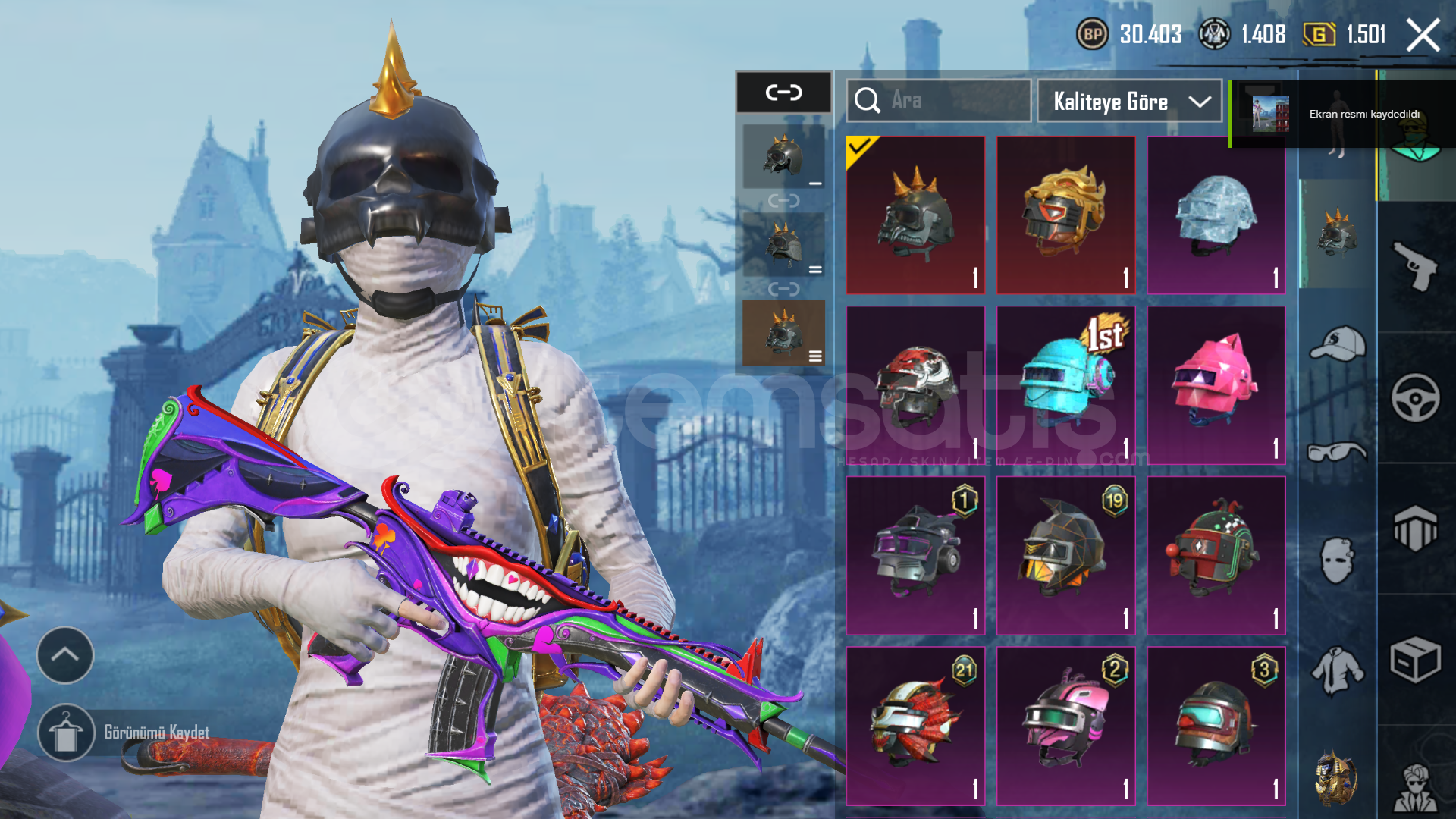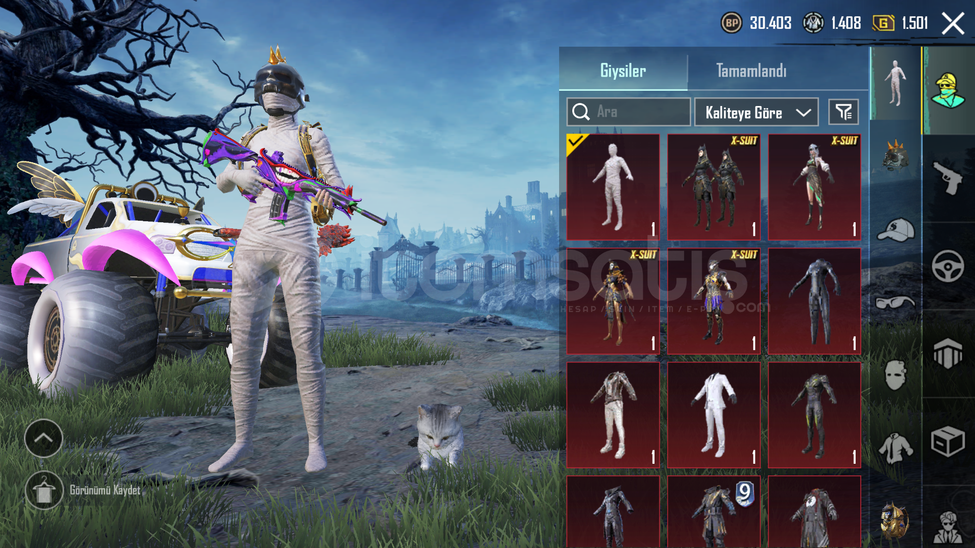 100 DESTANSI4 ADET X-SUIT HEPSİ 2 LEVELDİKENLİ KASKFİRAVUN ÇANTAMUMYA SETİWALKER ALTI--------------------------M416 MASKARA 5 SEVİYEYEDİ DENİZLER M24 4 SEVİYEORMAN BASKINI GROZA 4 SEVİYEMİDLLİ M762 4 SEVİYEGÖKSEL İŞARET UZİ 4 SEVİYEYÜKSELEN EJDERHA MG3 4 SEVİYEYÜKSEK SES SCARL 4 SEVİYERUHBİÇEN UMP 3 SEVİYEBİZON 2 SEVİYETHAMPSON 2 SEVİYEVECTOR 2 SEV&...