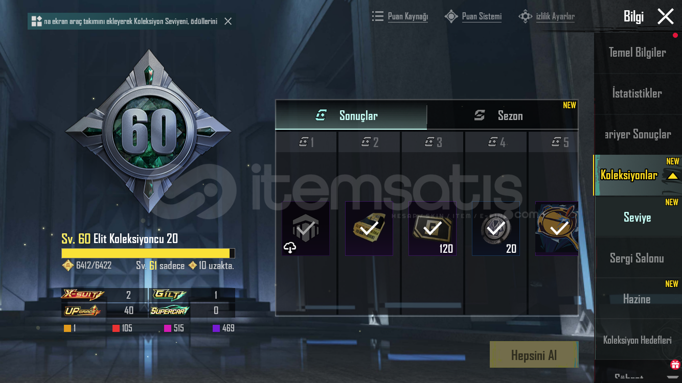 Hesabımda 61 koleksiyon 105 destansı 40 yüksektilebilir 1 spor araba vardır alım sonrası sorumluluk sizdedir şimdiden alana hayırlı olsun