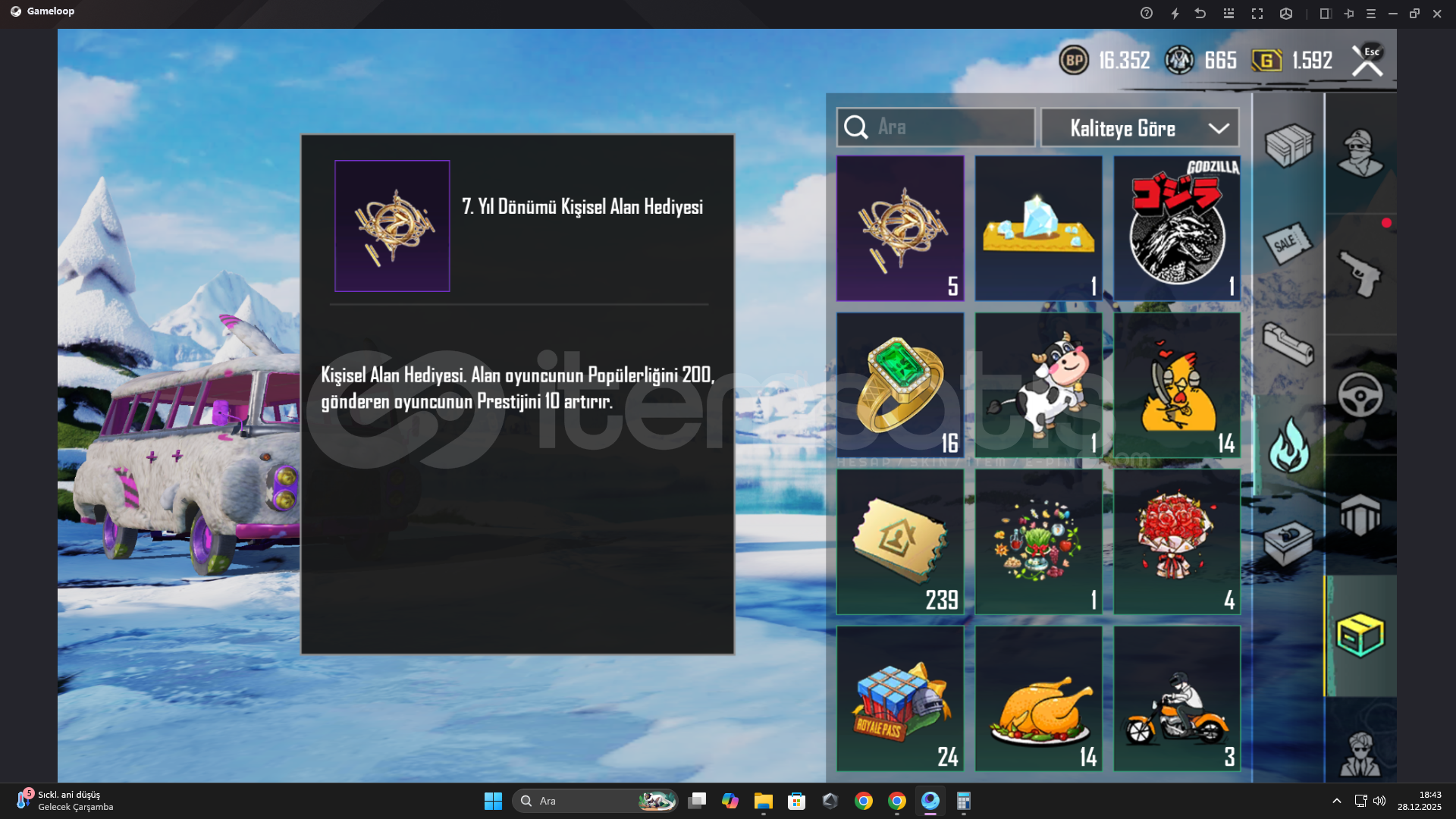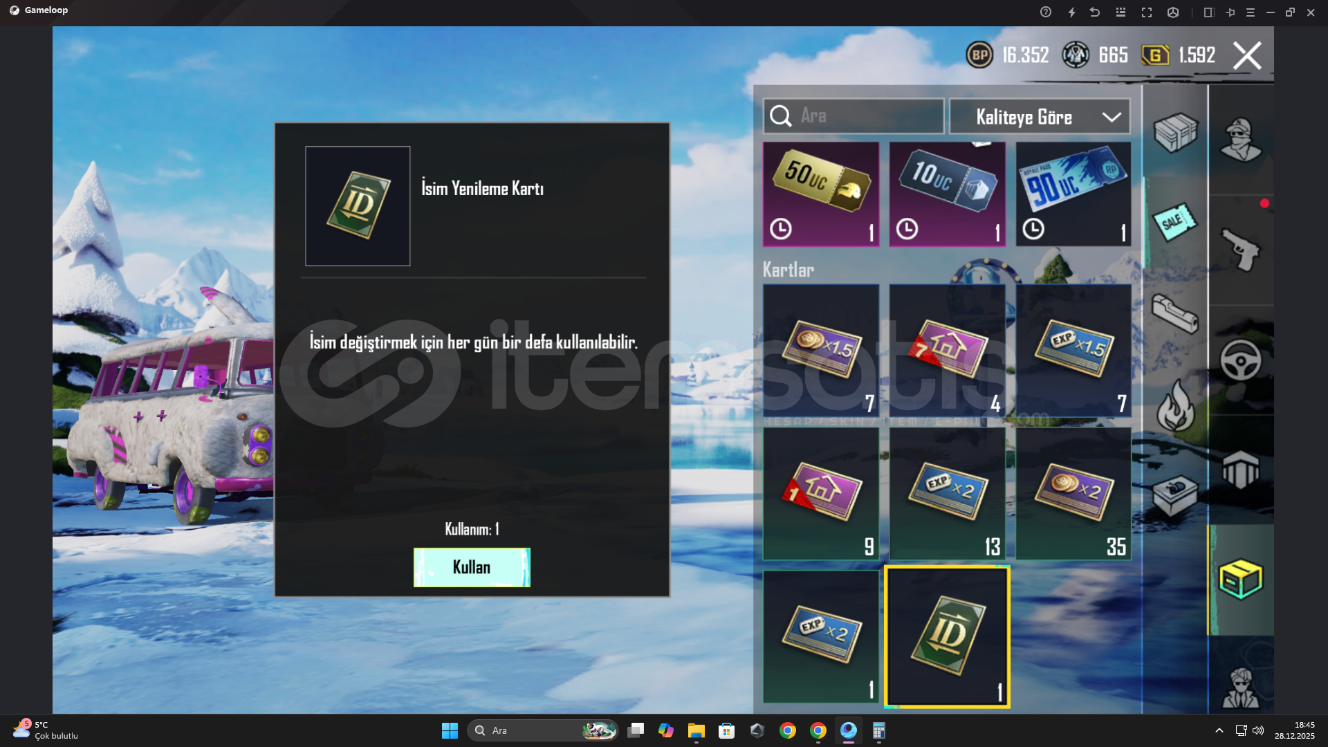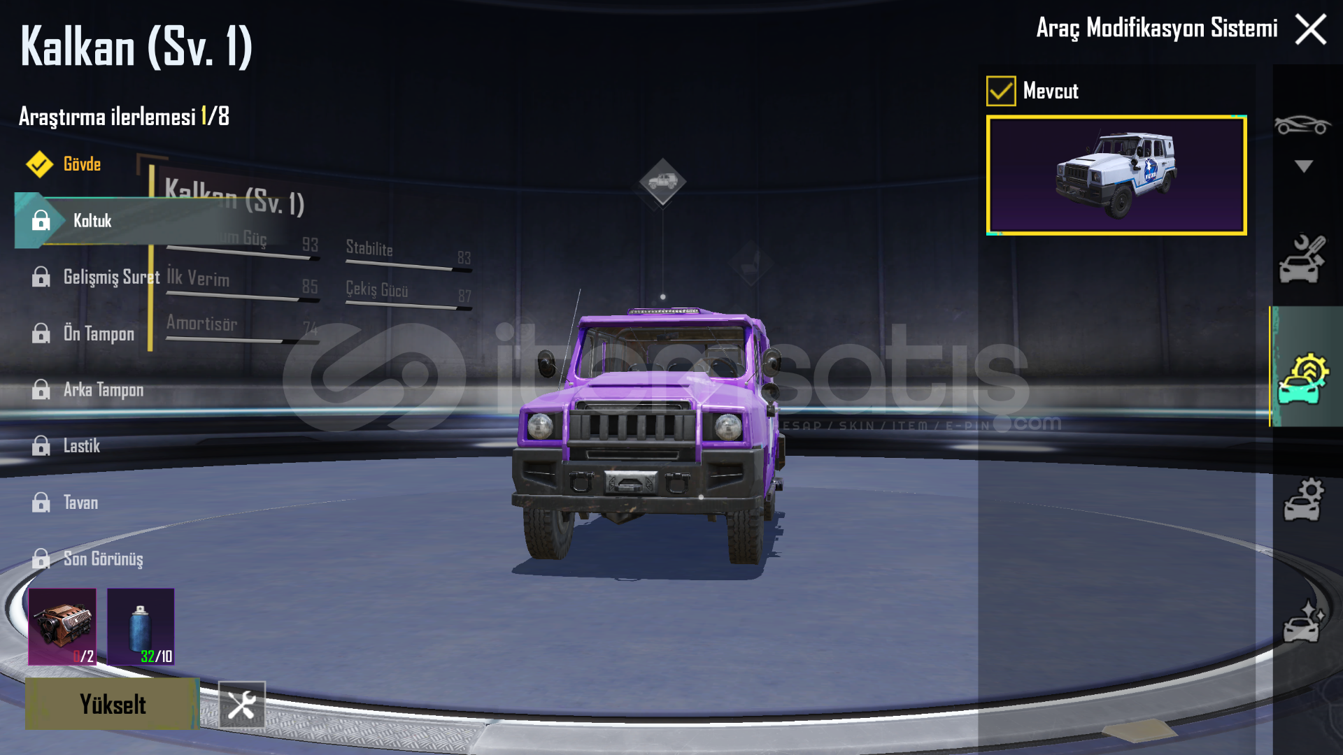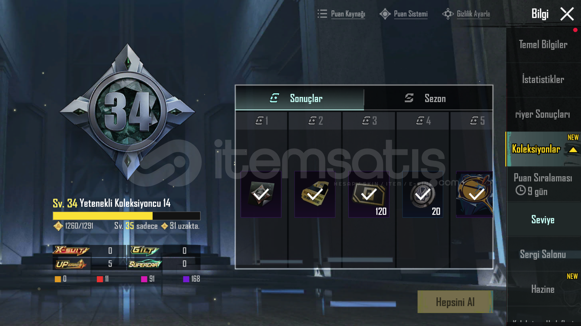 M416 Buz Diyarı 3 seviyeM16A4 Dikenli Şafak 1 seviyeSCAR-L Yarın Operasyonu 1 seviyeMK47 Yamalı Tavşan 1 seviyeUZI Vahşet 1 seviye UAZ Kalkan 1 seviye1 Tane isim değiştirme kartı4 Tane 7 gün boyunca sınırsız oda kurma kartı9 Tane 1 gün boyunca sınırsız oda kurma kartıbaşkasına popülerlik atmak isterseniz 15.500 popülerlik atabilirsiniz