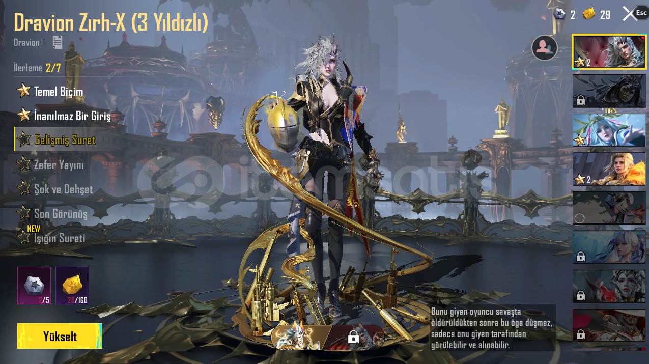 111 DESTANSI🔫 Yükseltilebilir Silahlar • Buz Diyarı M416 – MAX Seviye • Gümüş Kuru M416 – 6 Seviye • Mühürlü Yeraltı M416 – 3 Seviye • Yakan Kükreme M416 – 3 Seviye • Denizlerin Evrimi UMP45 – MAX Seviye🛡 X-Suit (Üç Suitler) • Dravion Zırh X – 2 Seviye • Galadria Zırh X – 1 Seviye • Core Alev Zırh X – 2 Seviye🎭...
