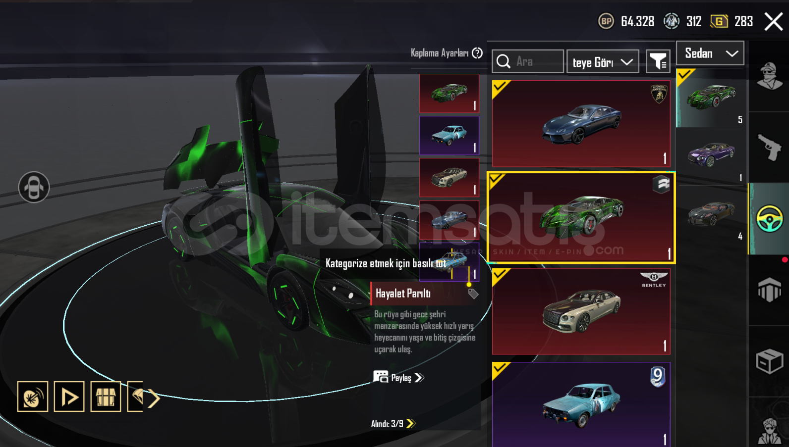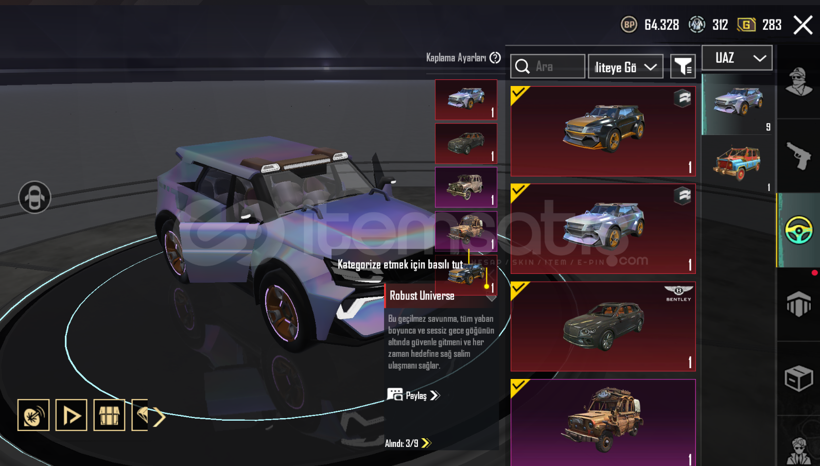 12 SPOR ARAÇ ÇIĞ ZIRH X SUİT FULL MAİNLİK HESAP