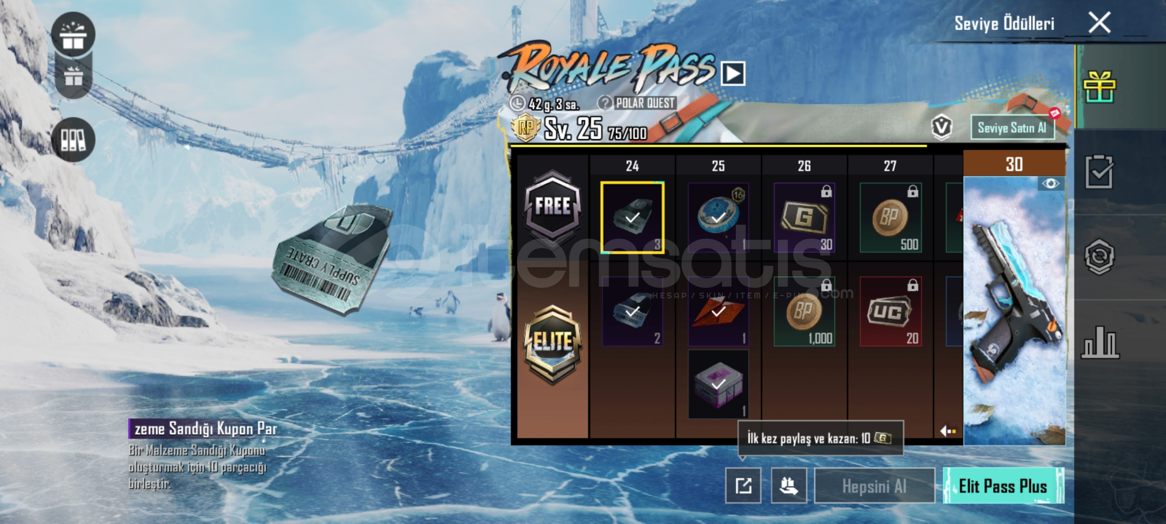 HESAP 23 DESTANSİDİR RP ACİKTİR MAX SİLAHLARK VARDİR 3 MATERYAL VAR DOLU DOLU ESKİ SEZON HESABİ 40 KOLEKSİYON ALİCİSİNA HAYIRLI OLSUN PAZARLİK SUNNETTİR YAZİN
