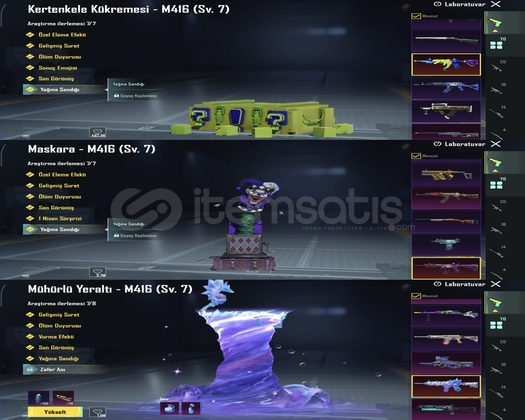 - ÖLÜM MESAJLI SİLAHLAR -Maskara M416 - maxKertenkele M416 - maxMühürlü Yeraltı M416 - maxZincirli Cehennem Uzi - 5svVeri Kedisi DP28 - 4svYaramaz Siber Kedi P90 - 4svŞiddet Dalga UMP45 - 4svYükselen Ejderha MG3 - 4svYaldızlı Galaksi MK14 - 4svHaset Dikeni SCAR-L - 4svKış Kraliçesi M249 - 4svKüçük Midilli M762 - 4svOrman Baskını Groza - 4svBaston Şeker Thompson - 4svAltın Kont Vector - 4s...
