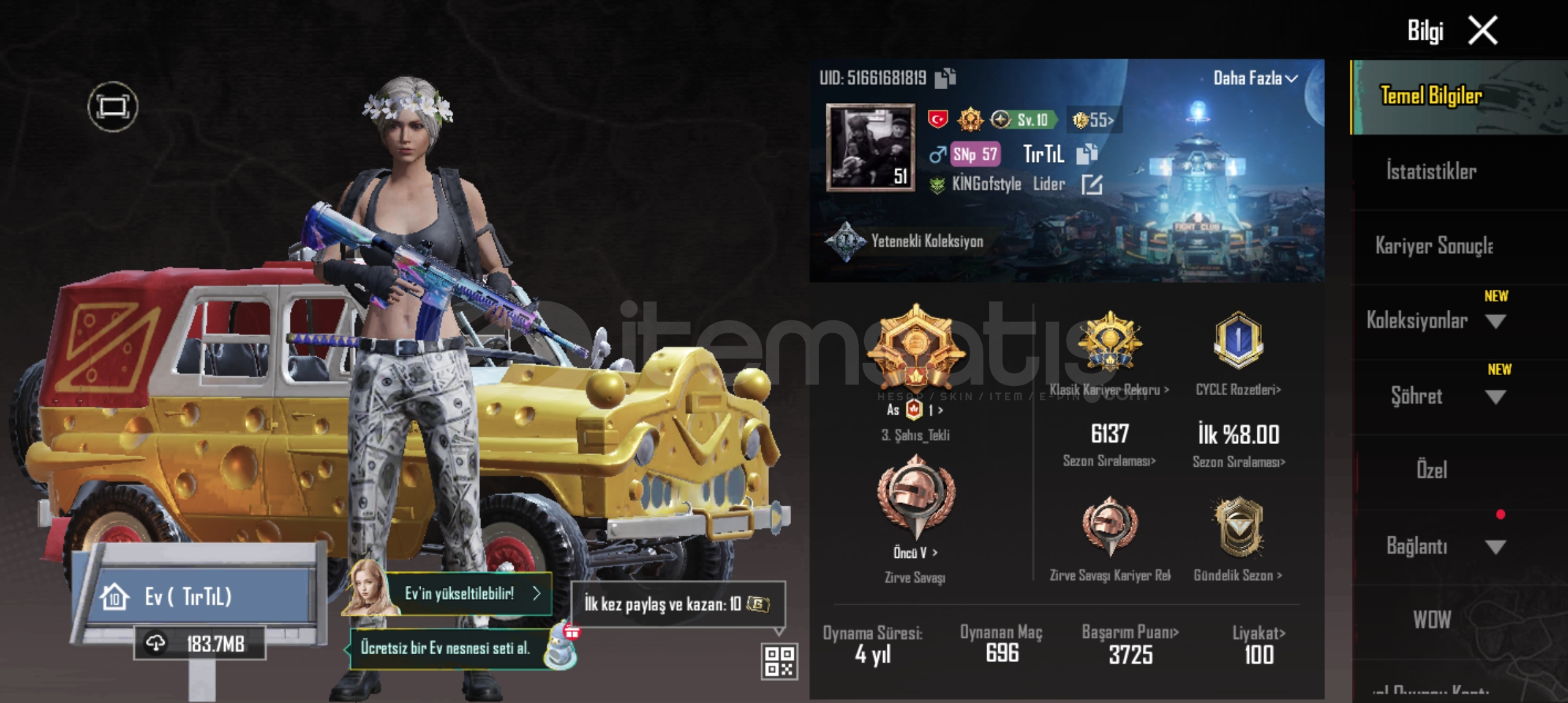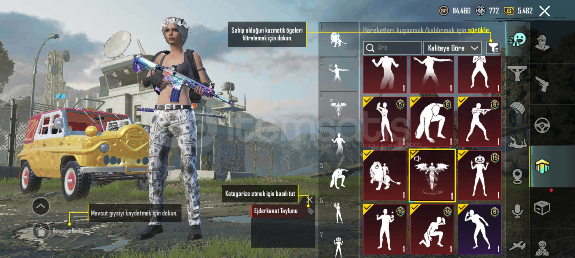 Hesapta 14 destansı 6 yükseltilebilir bulunmaktadır.dolar pantolonu ve ayakkabısı mevcuttur