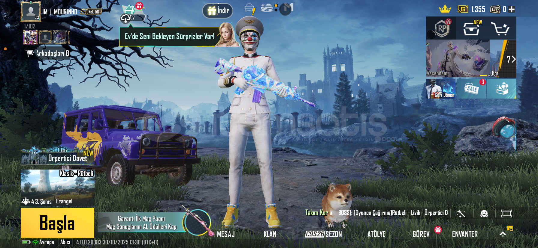 Hesapta 15 Geliştirilebilir silah vardırHesapta 49 var Oyunu oynayarak taç olup destansı gösteriş olabilirsinizHesabta 4 Seviye olmasına 2 küçük malzeme kalmış m4 vardır Ayrıca Komutan seti bütün parçalarıyla ve crew seti vardır1 Adet Nihai öğe bulunurID 51002248010