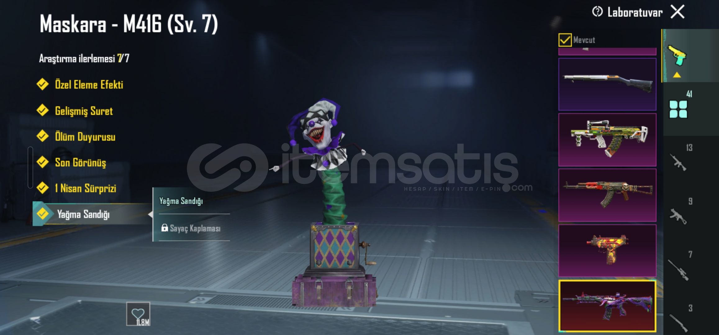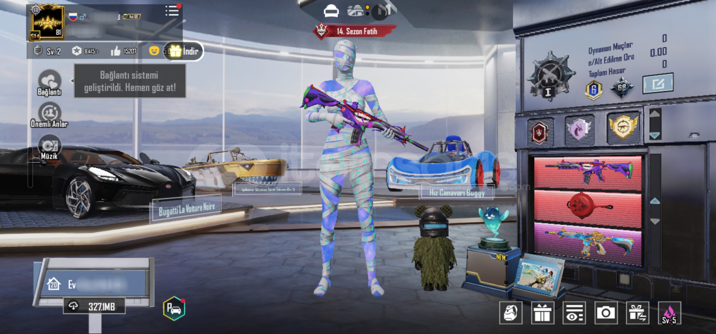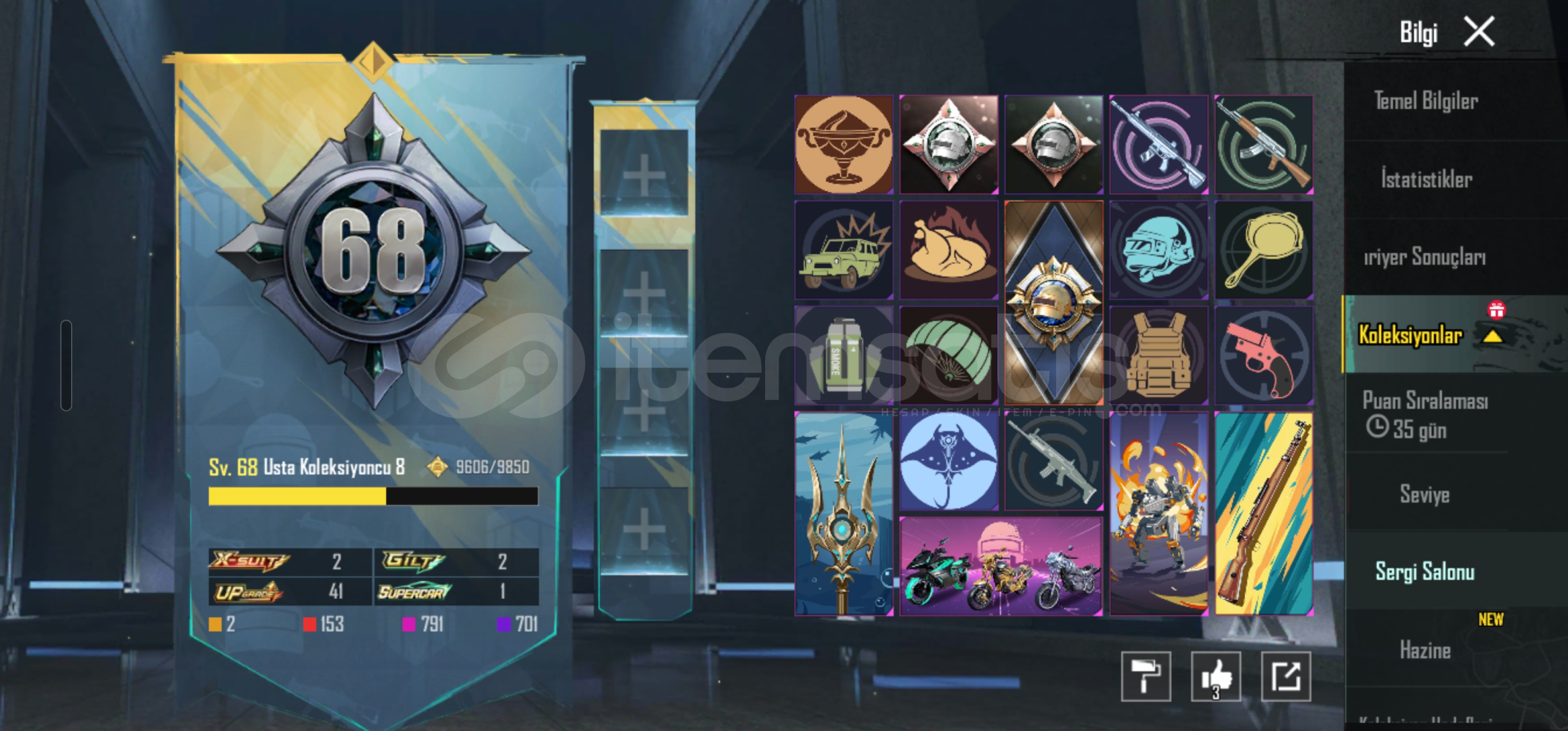 68koleksiyon seviyesi41tane yükseltilebilir silah21silah ölüm mesajı açık2 xsuit2 nihaiSaç yüz açıkBol emoji ve skinler nadir skinlerde varBağlar degişiyor ömürlük güvenli hesap detay icin yazabilirsiniz fiyat teklifi verebilirsiniz