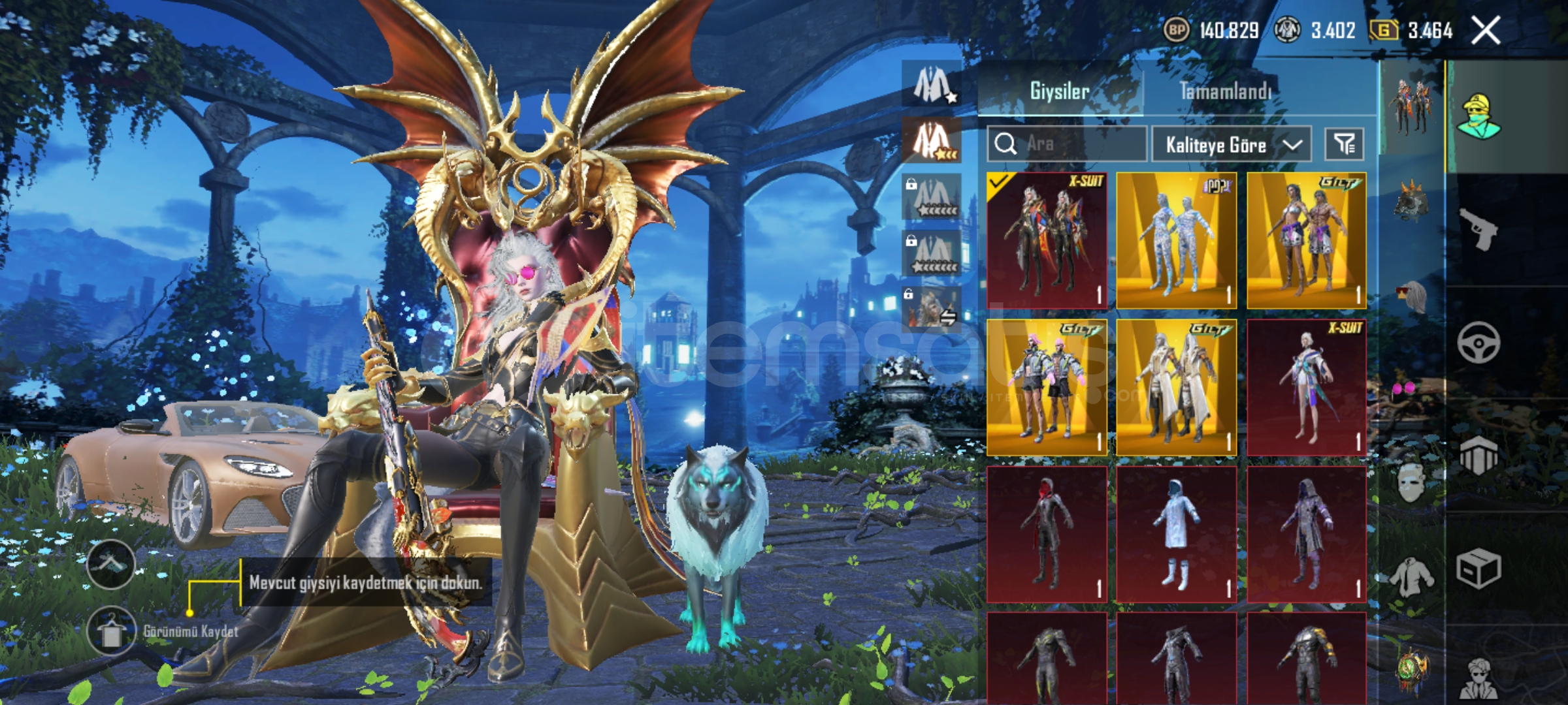 156 destansı 69 sv koleksiyon4 nihai set2 xsuit Dravion 3svgladaria 2sv7 Spor arabaAston Martin mavi UAZHayalet Mor TOROSSarı DODGE TOROSAston Martin siyah/sarı MİRADOVolkswagen PEMBE MİRADOMaserati MC20 Lotus Emeya (altın Şimşek) Dalgaların şefkati m416 (7sv)Buz AKM (4sv)Mor intikam AWM (4SV)Öldüren nağmeler M24 (4Sv)Gecenin şarkısı GROZA (4SV)Üstün yırtıcı VEKTÖR (4...