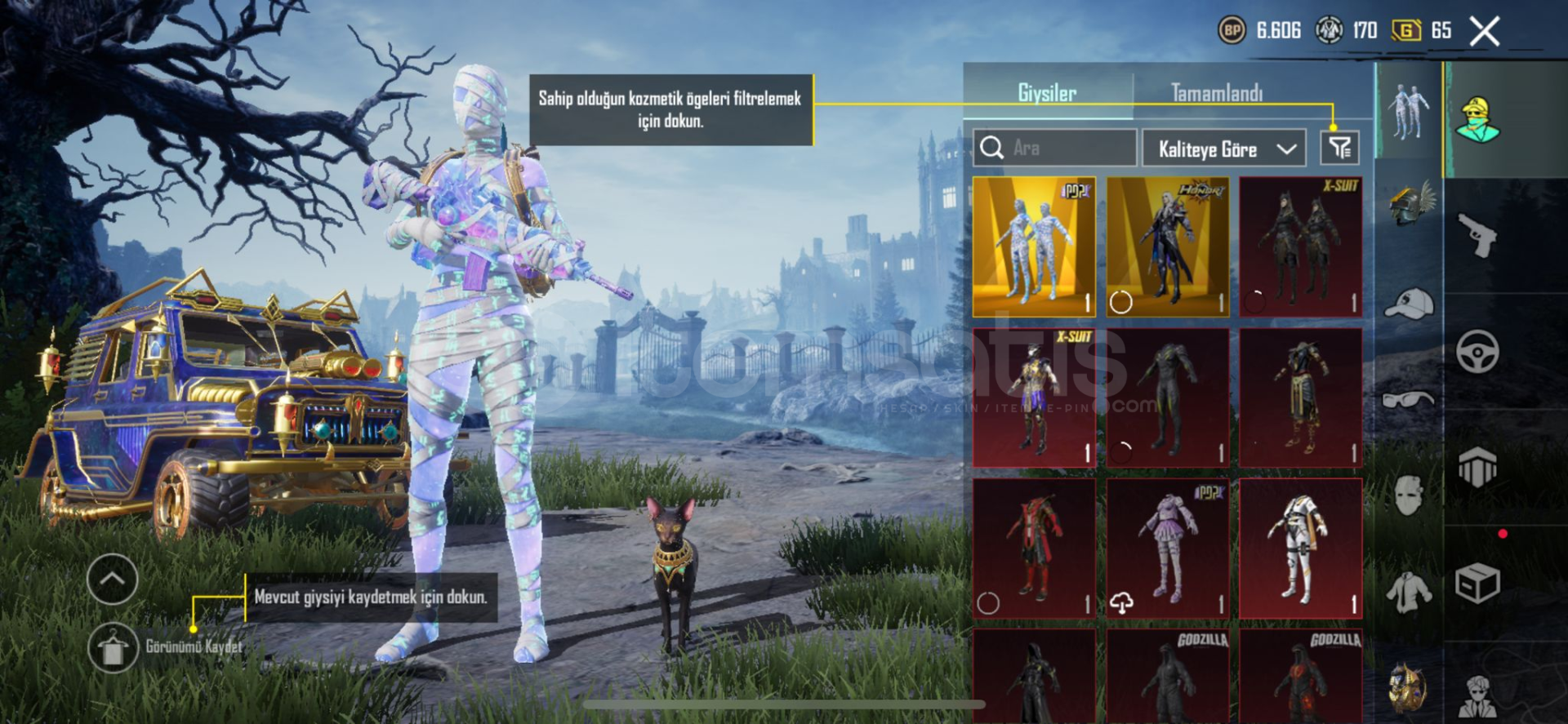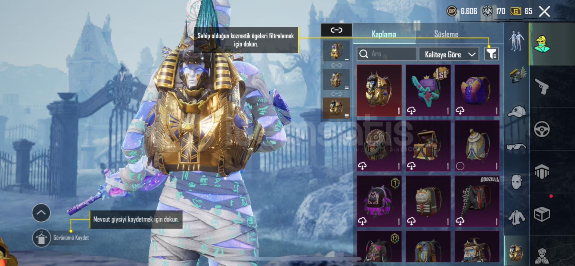 2 nihayi mumya var em4 yükseltiril 2xsuit varFiravun ve anugra var firavun çantası varMidili m7 var ve mumya uzi var firevun p90 varVe bütün siahlarda desen var