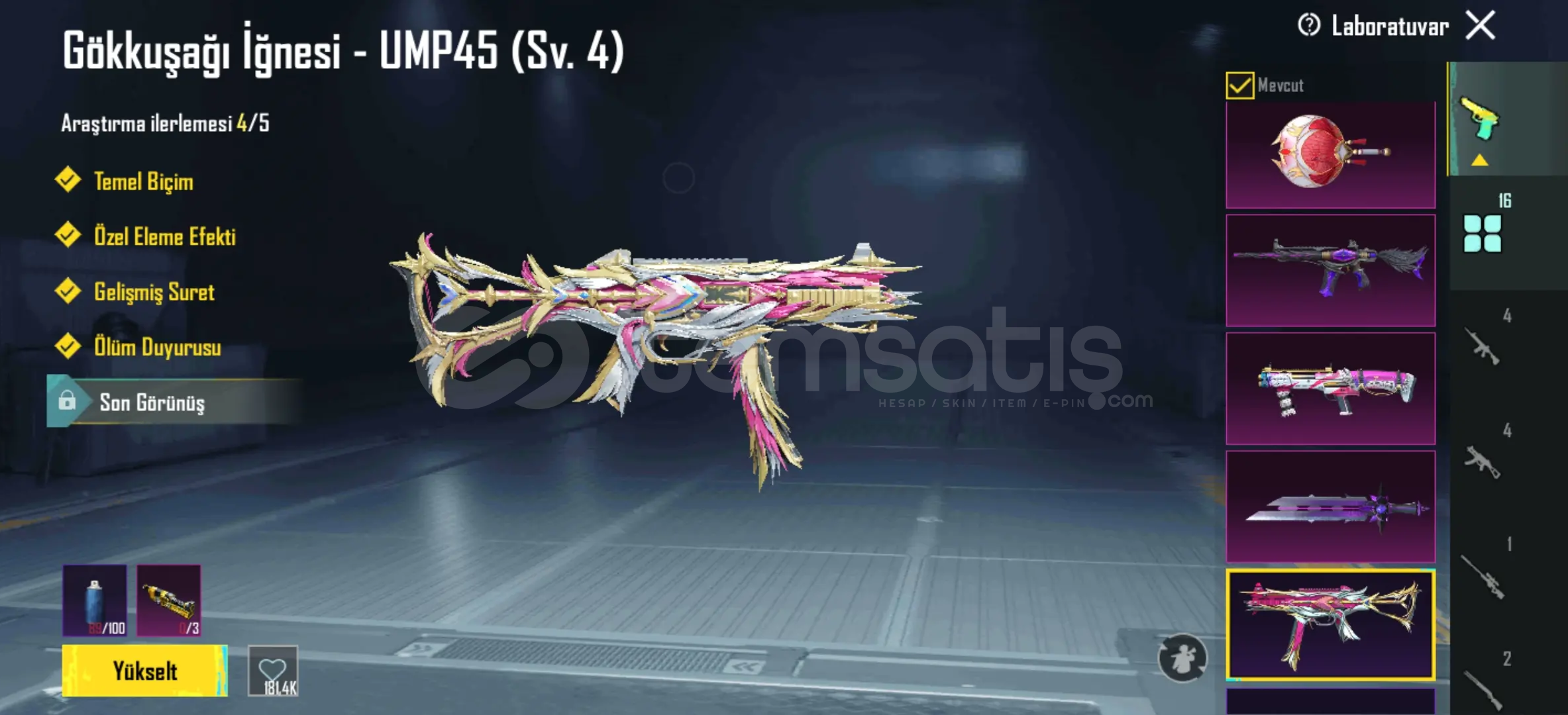 TEK BAĞ FIRSAT HESABI 16 YÜKSELTİLEBİLİR-SHINOBI KAMI M416 (4sv)-Gökkuşağı İğnesi Ump (4sv)-Dikenli Şafak M4A1-Fantastik Diyar Scar-L-Ruhani Muhafız Uzi-Spy x Famıly Güç Bıçakları-Zarif Leylak Thompson-Peri Cazibesi Tava (ölüm duyurusu açık)-Lider Panter DBS (ölüm duyurusu açık)-Ejder Katili Yadigarı Pala (ölüm duyurusu açık)-Y&...