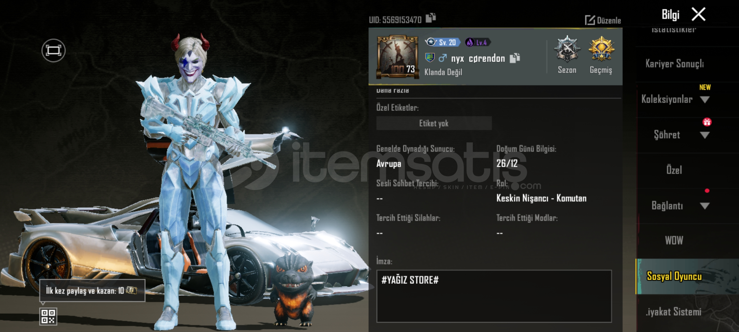 Hesabımız tek bağ epostadır numarası ödüllüdür bağ değişimi yarın açılıyor hiçbir sıkıntı yaşanmaz 157 destansı 5tane xsuit vardır fiore3 çığ3 anukhra2 diğerleri 1 seviyedir 57yükseltilebilir silah vardır 4tane m4deseni 3ü ölüm duyurulu birtanesi maxtır hesabımız her yönden doludur kaçırılmayacak bi fiyattan ilana koydum yindede pazarlık sünnettir bişeyler yaparız sorusu olan çekinmeden sorabilir formuda tertemizdir Alana Hayırlı Olsun