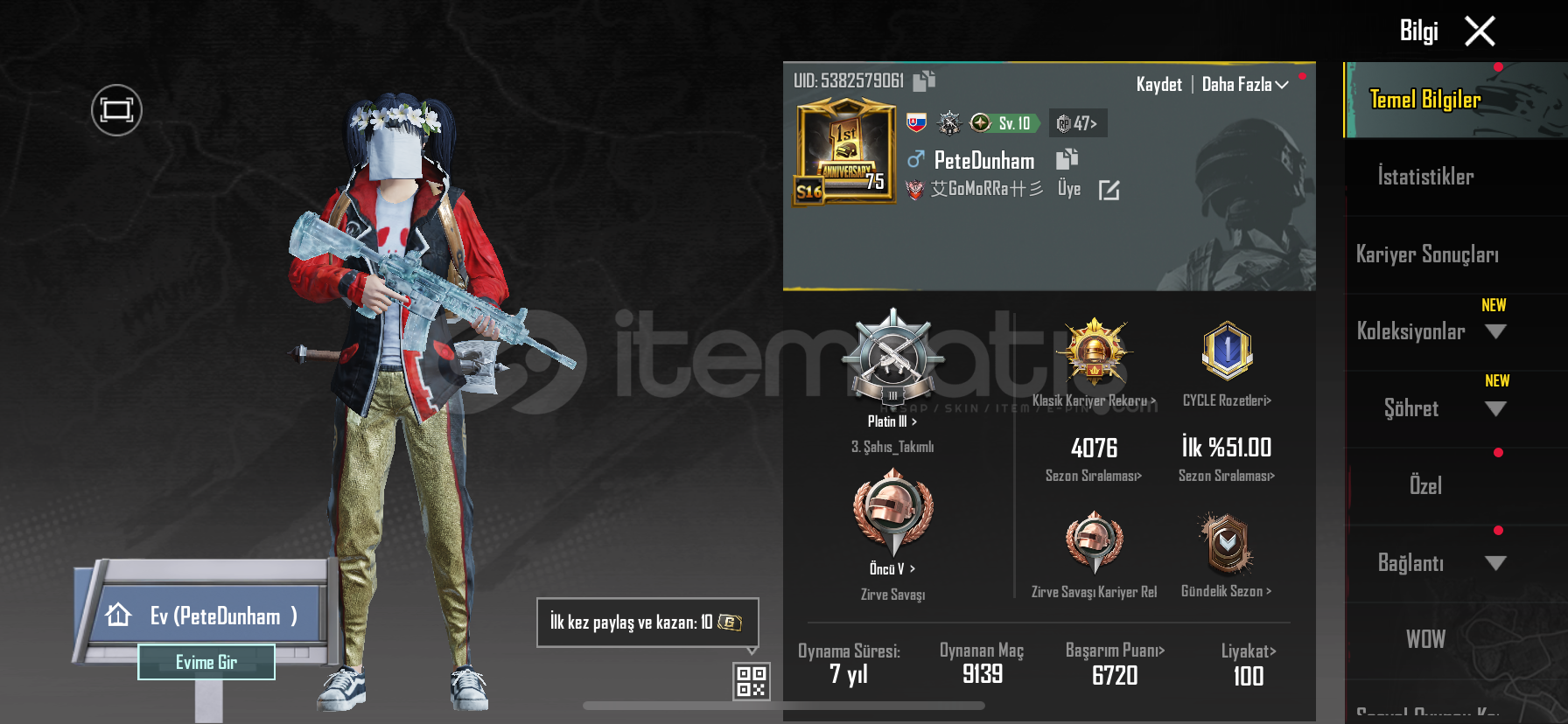 Oyunu geçici olarak bıraktığımdan dolayı hesabım satılıktır koleksiyon açık fotoğraflarda id var cüzi miktar pazarlık olur dosta gider ❤️