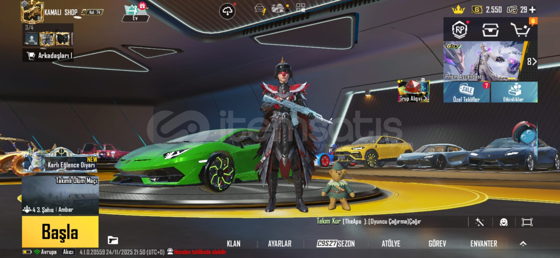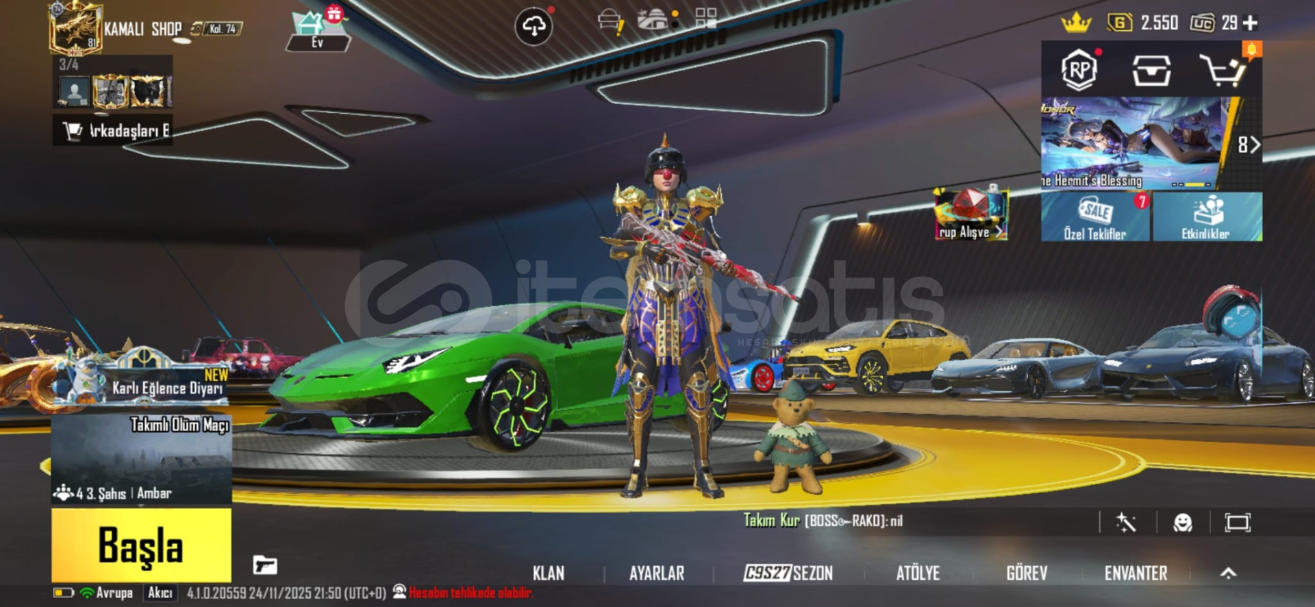 185 destansı 15 emojili set firavun 6 kuzgun 5yanar döner zırh 4çığ zırh 3 kalanlar 1 seviye 5 spor araba 58 silah 30 ölüm mesajlı 8 tane maxx silah destansı olarak form geçmişi yoktur alıcıya hayırlı olsun detaylı video atılır
