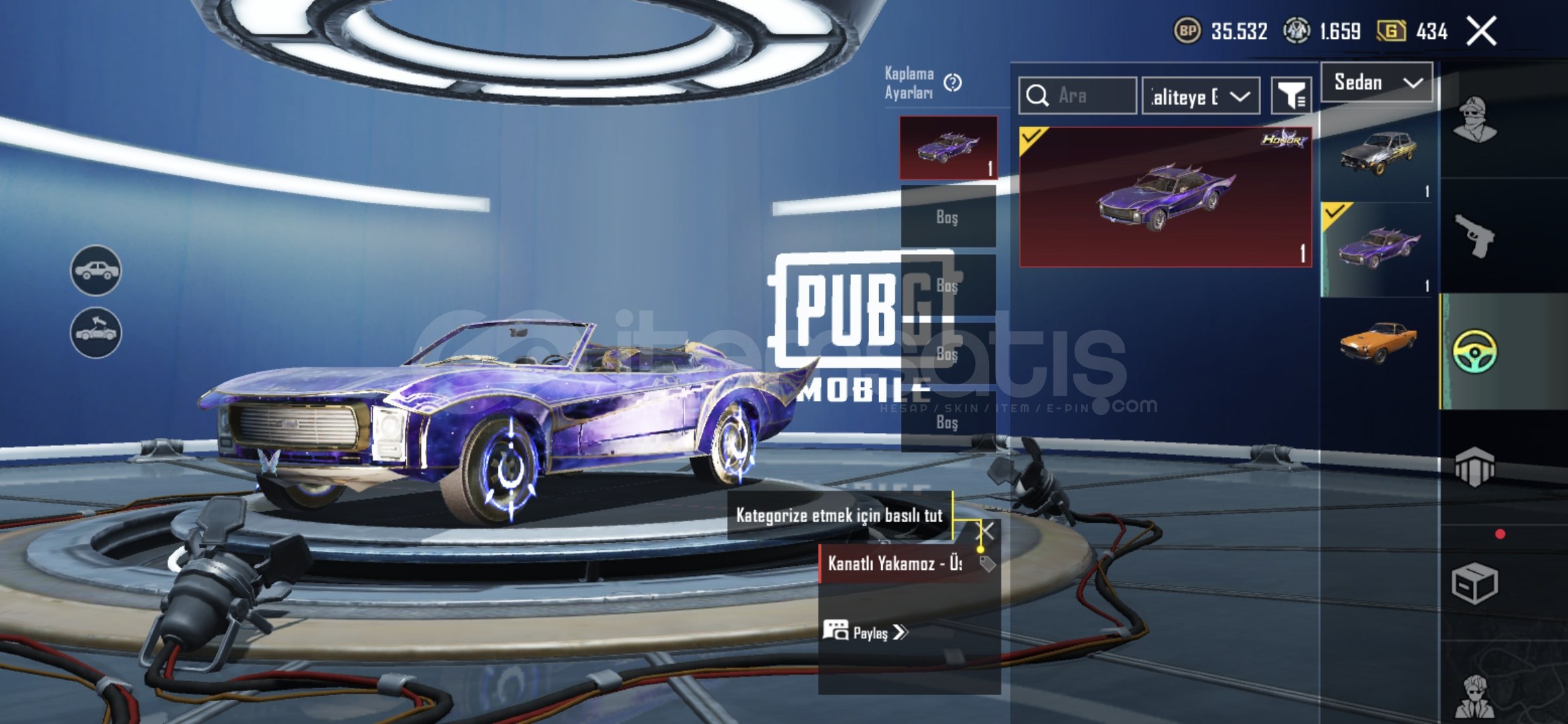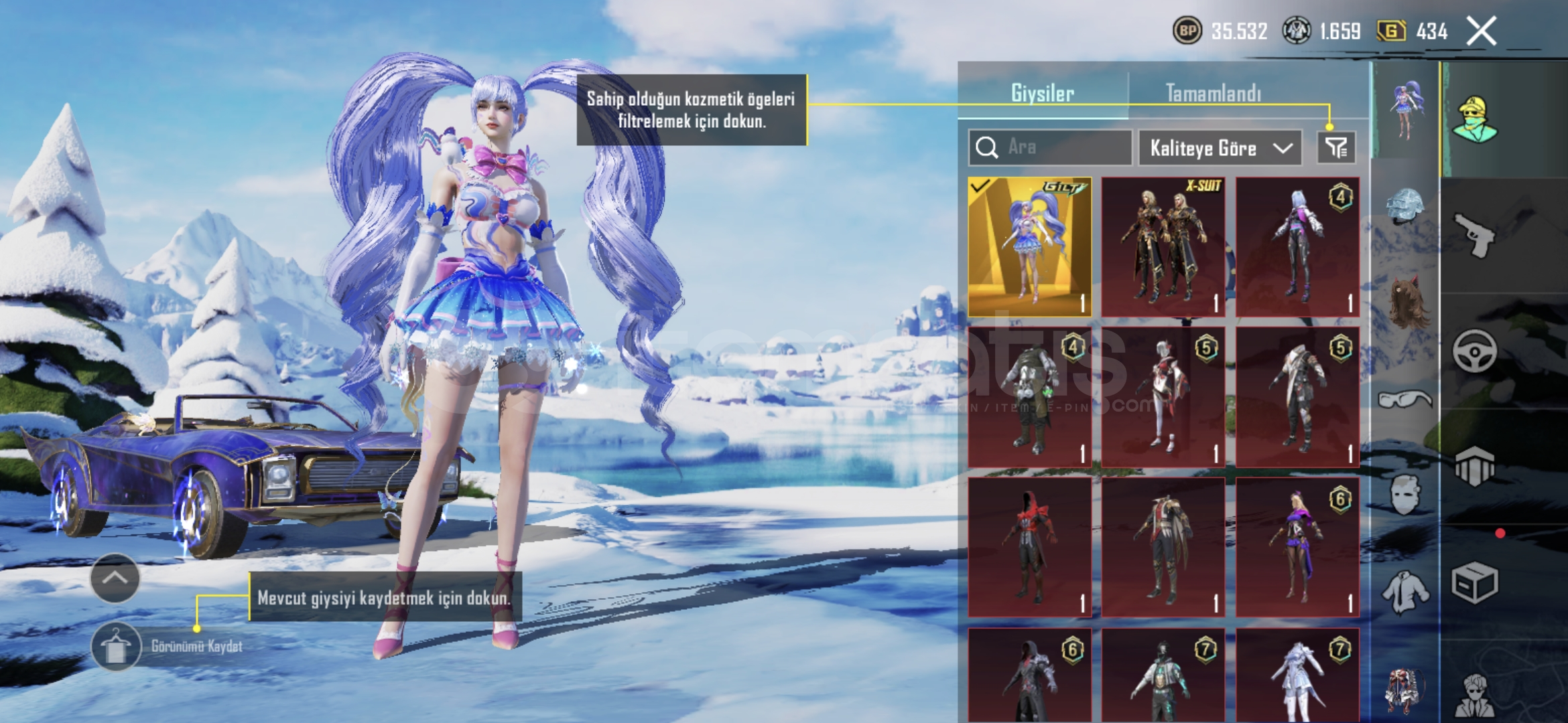 Değerli İçerikler:Nihai: Kar Yıldızı SetiX-Suit: Kor Alev ZırhıAraba: Kanatlı Yakamoz - Üstü Açılabilir ArabaYükseltilebilir Silahlar:Şekerli Hortlak - MP7 | Sv. 1Deniz Rüyası Nelodisi - SLR | Sv. 1Gece Gladyatörü - PP-19 Bizon | Sv. 2Zarif Leylak - Thompson | Sv. 1Peri Cazibesi - Tava | Sv. 2Lider Panter - OBS | Sv. 38 Bitlik Patlama - UMP45 | Sv. 2Baston Şeker - Thompson | Sv. 3Hesap hakk...