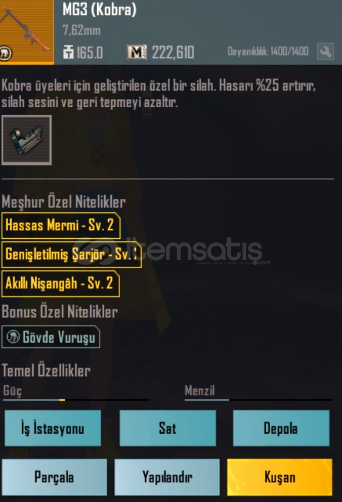 🔶️TOPLU ÂLIMLARDA İNDİRİM VEYA EKSTRA ESYA HEDIYE GARANTİLİ 🔶️🔷️DETAYLAR🔷️Fotoğrafta Detaylar mevcuttur Silahlar son hallerine kadar basılmiş daha fazla yukseltilme yapilamaz🔺️2 Adeti 35 tl dir tek fiyati 25tl dir🔺️