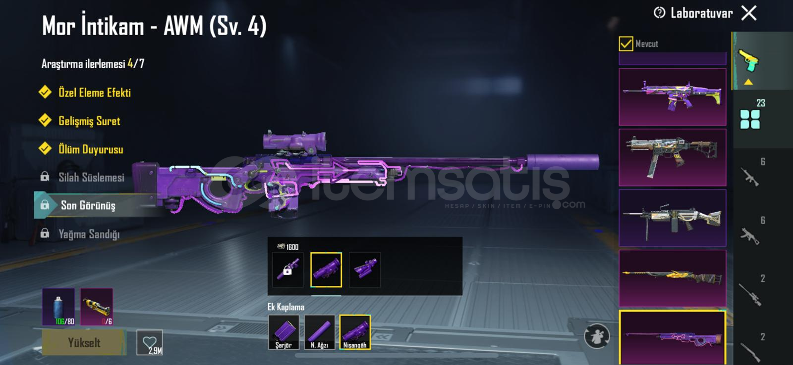 BUZ full Mor İntikam Awm var 4 seviye awmde bütün eklentiler var 8x yok sadece. Maskara Scar-L vardır.
