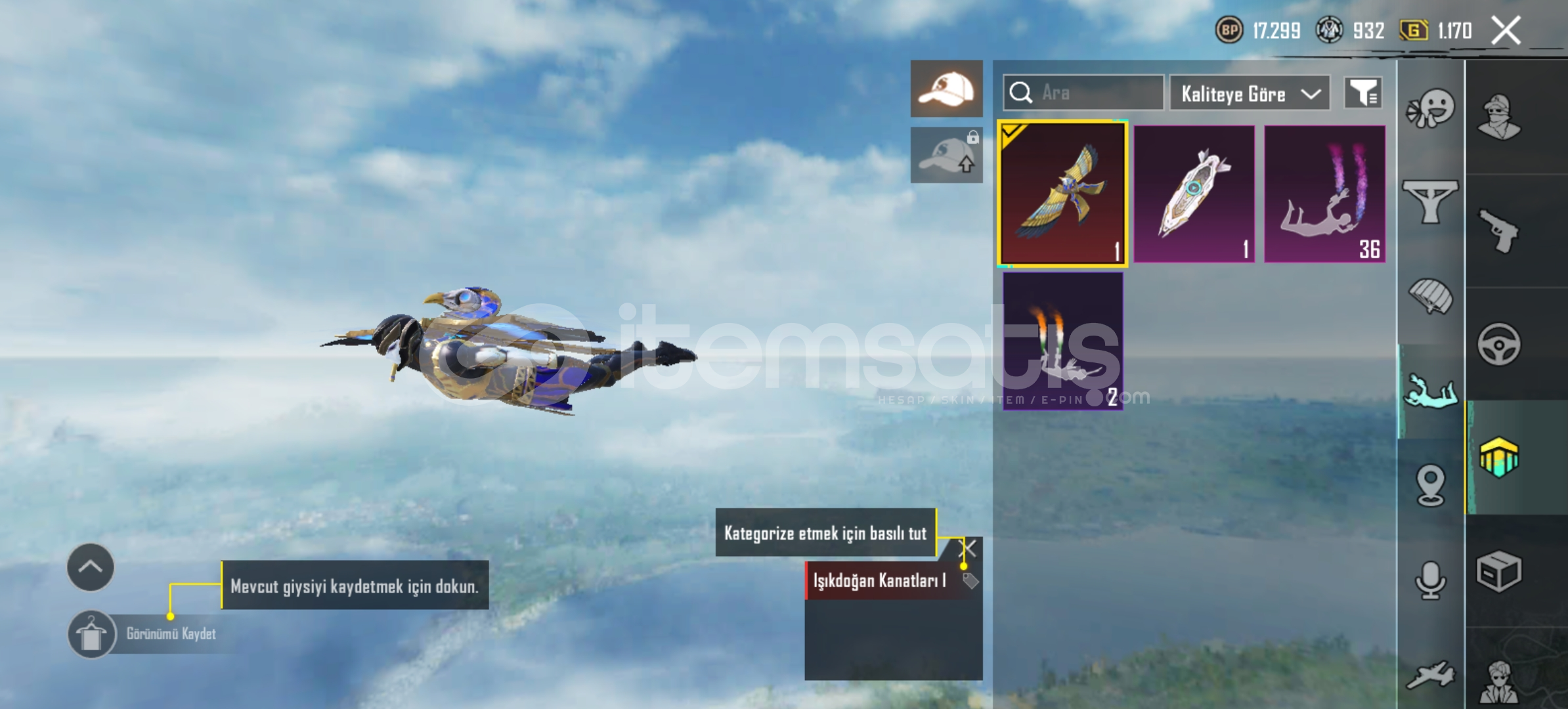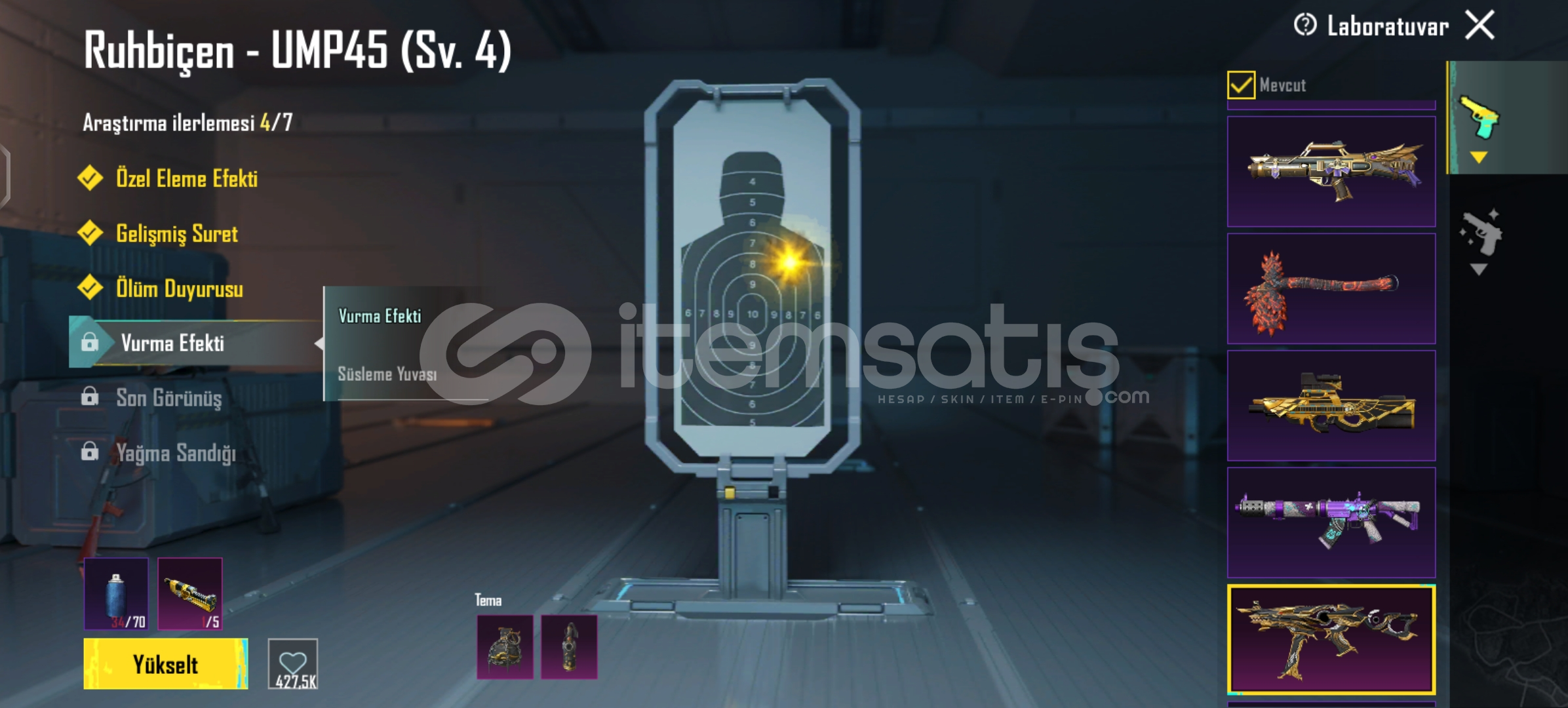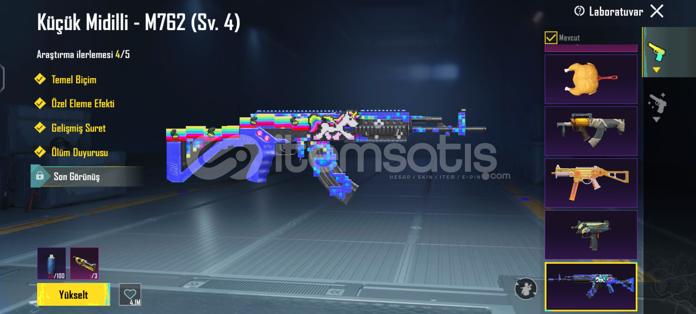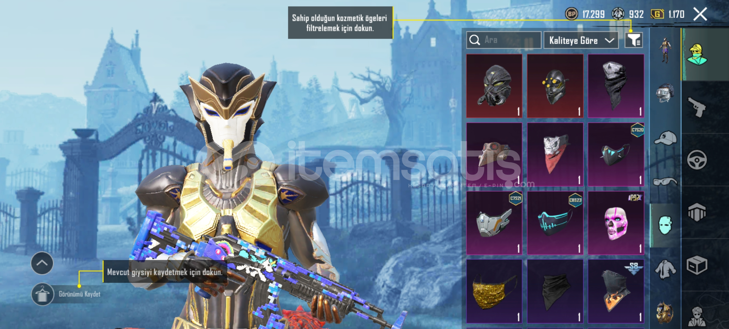 Midilli 4 seviyeFiravun 2 seviiyeAnahkura 1 seviyeİşgalciAltın kum doruğu buggyIşık doğan kanatları1 destansı amblemFiravun mührü sırt çantası10 yükseltilebilir silah 2 tane ölüm duyuruluMidilli m762 4 seviye ruh biçen ump 4 seviye