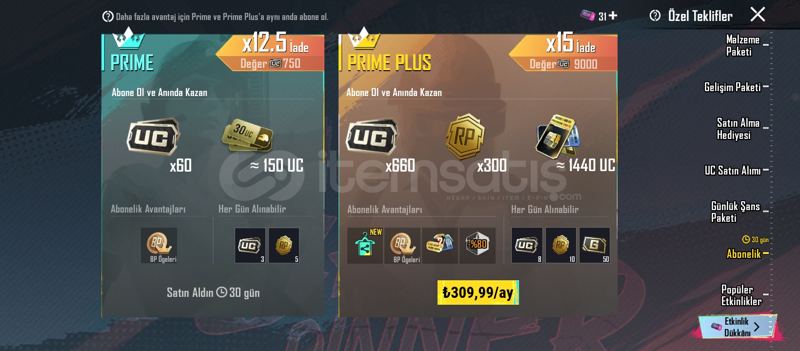 PRİME ABONELİK +120 UC VARDIR