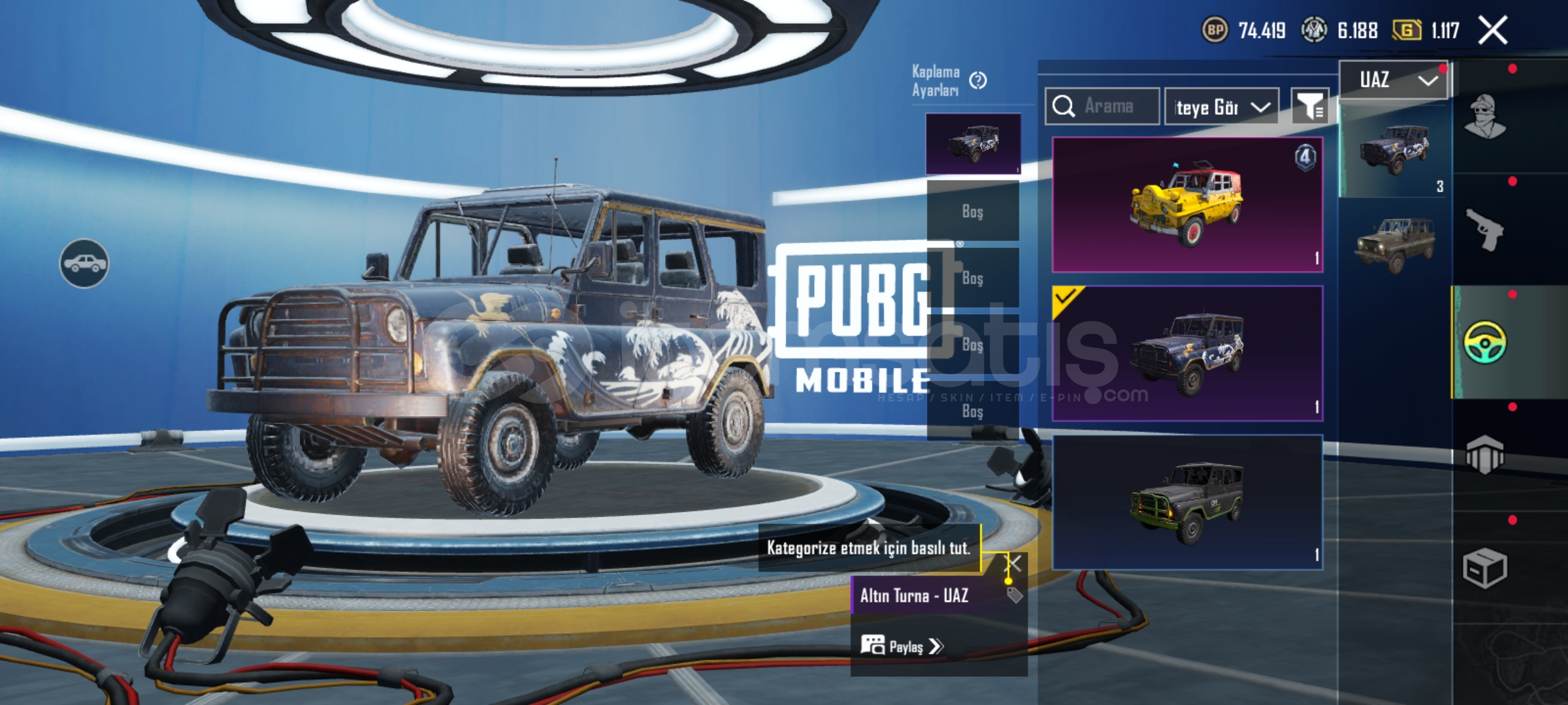 PUBG Mobile kategorisinde 15 gün adı altında satış yapılması kesinlikle kabul edilemez, gerçeği yansıtmayan ve doğruluğu olmayan bir işlem olduğu için yasaktır, tespiti durumunda lütfen bize bildiriniz.