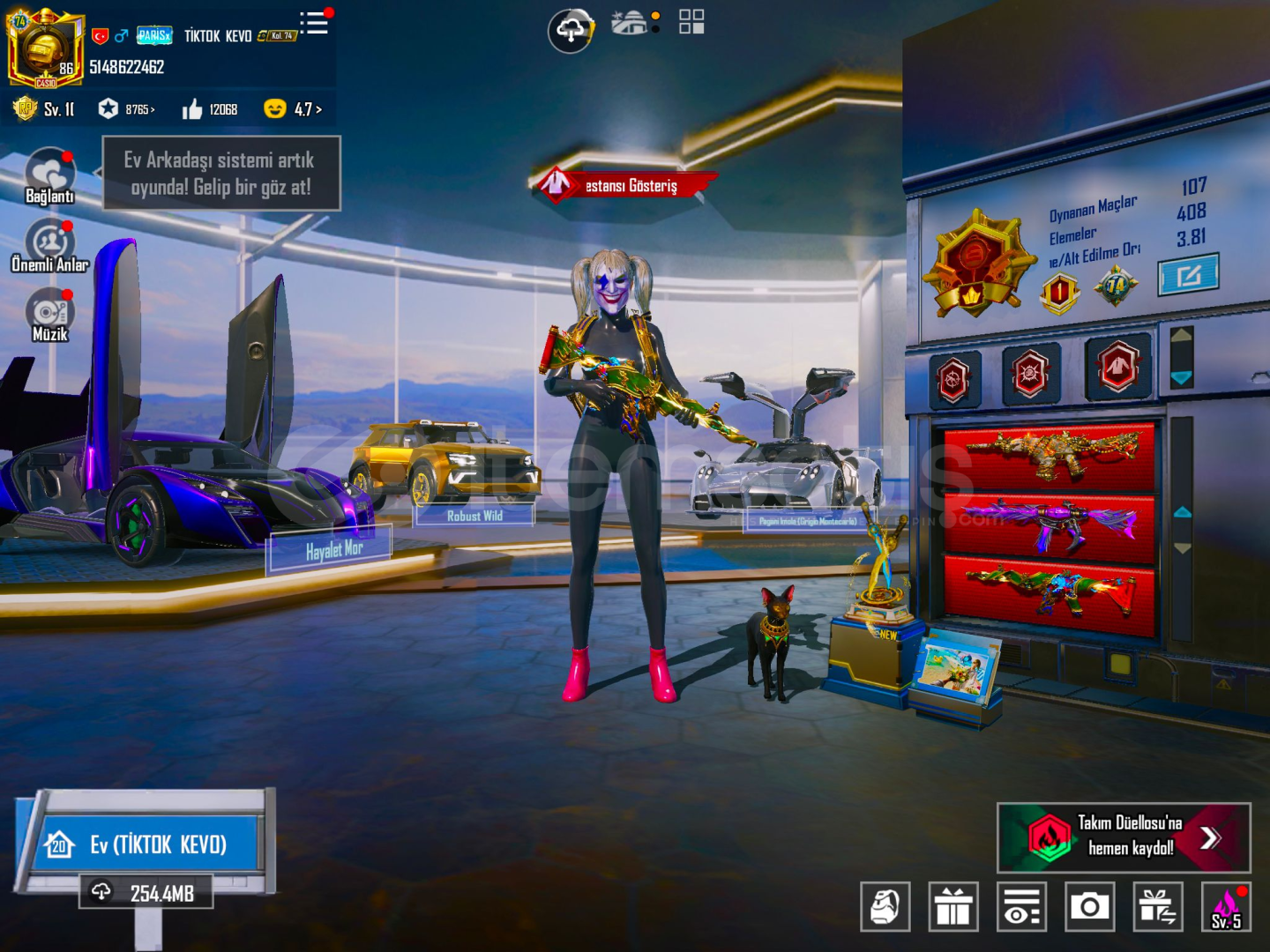 86 Seviye1 Adet Fatih Çerçevesi7 Adet Zırh X SuitFiravun ÇantasıS5 Saç MevcutMavi Forma FullKutup Mumya SetiMavi Mumya SetiKozmik Cellat SetiTekinsiz Soytarı SetiKış Majestesi SetiVampir Kontes SetiSemavi Asi Seti5 Adet Spor ArabaRobust Wild UazHayalet Mor SedanPagani İmola GrigoDodge Challanger SRT AteşUçar Adım Canavar Kamyonet59 Adet Geliştirebilir20 Adet Mesaj Duyurusu3x 7-8Lvl 3x RedDESTAN GAME GUVENCESİYLE...