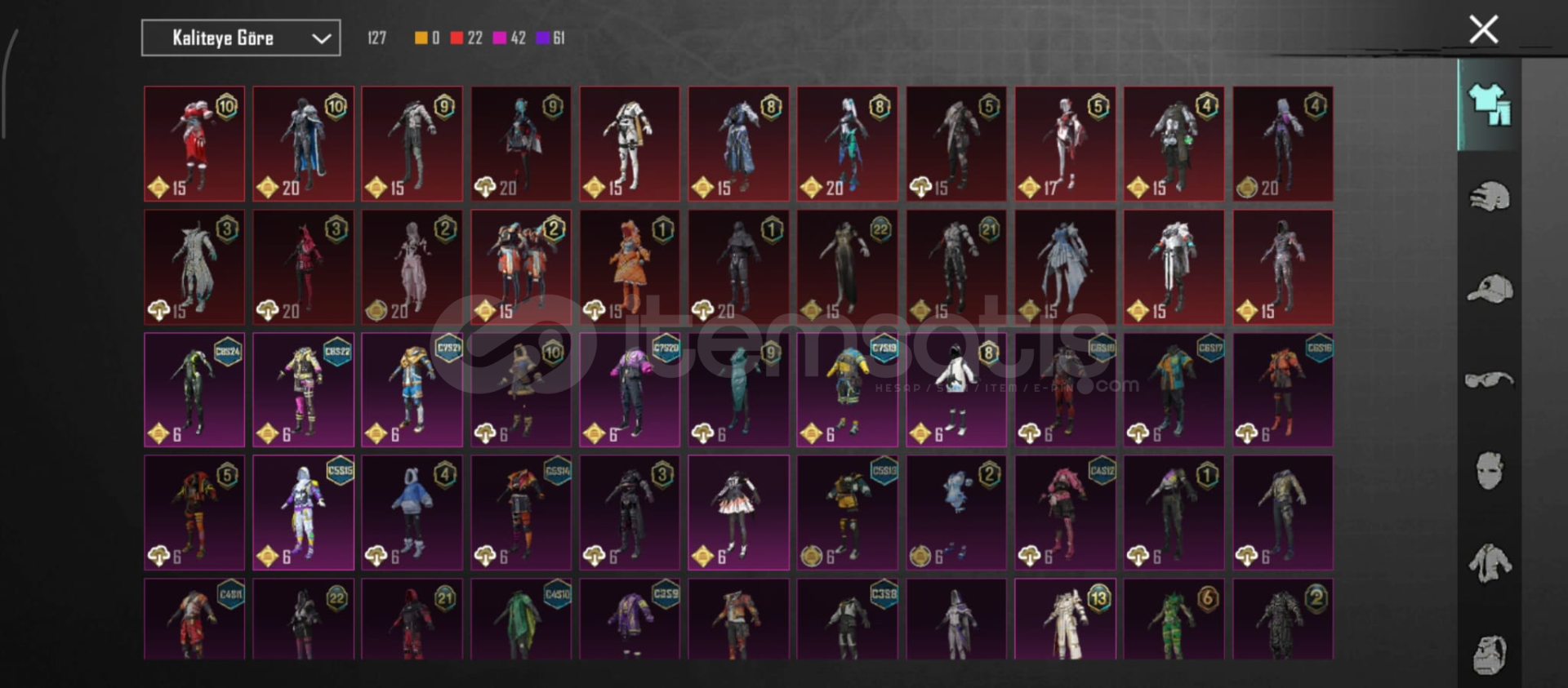 Hesapta 22 destansı vardır hepsi nadirdir ve hesapta 5 tane destamsı amblem 2 tane materyal vardır isim kartı var m762 4lvl