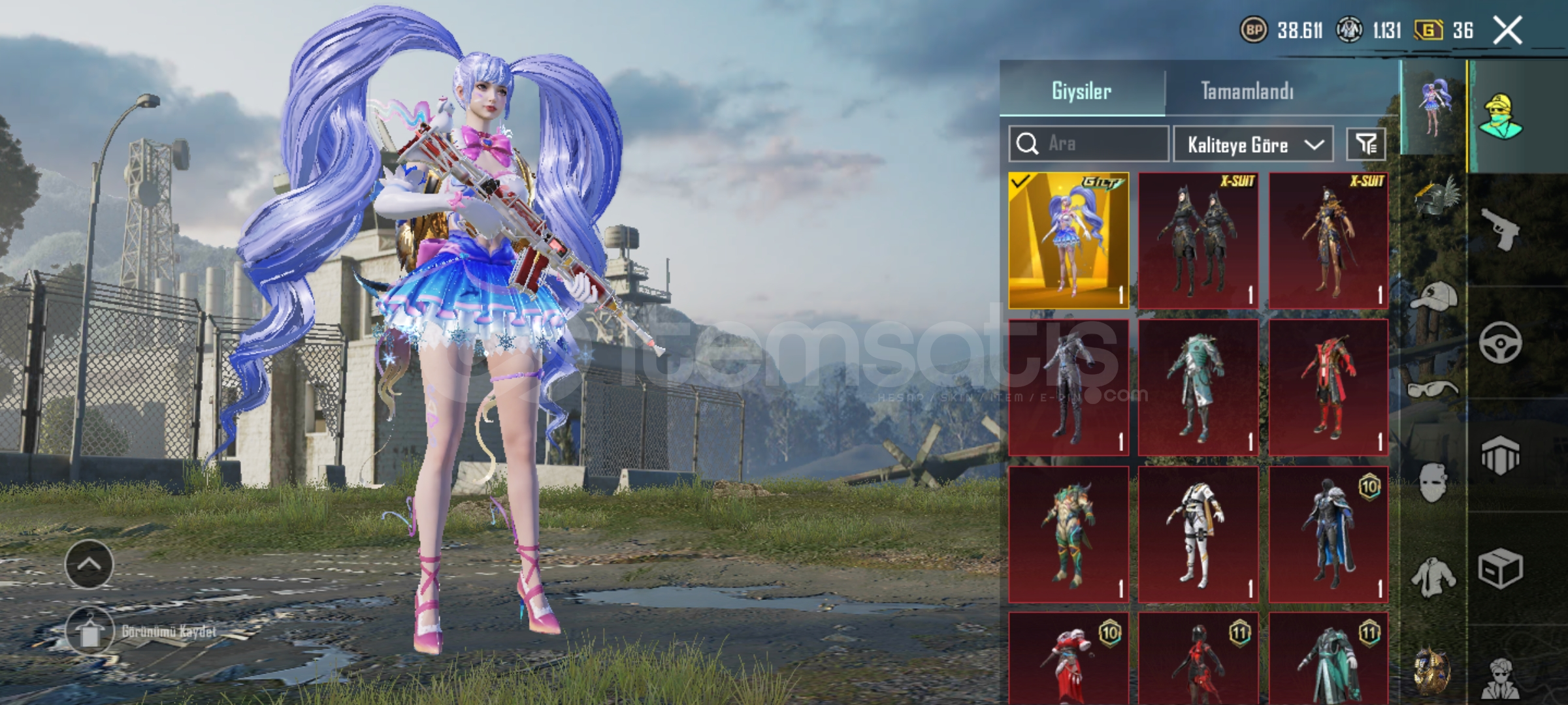 Hesap 69 seviyedir 26 destansı vardır S12 k 4 SEVİYEDİR Uzi 4 SEVİYEDİR RP açıktır 200 üç vardır hesapta 4 materyal vardir Firavun çantası vardır Medyum kaskı vardır İd için yazabilirsin