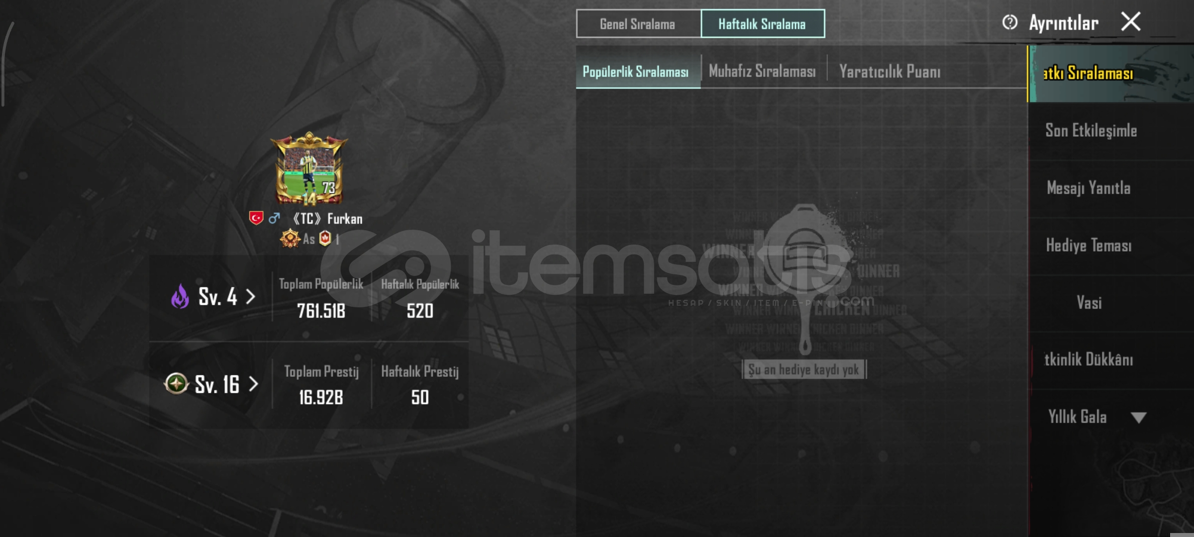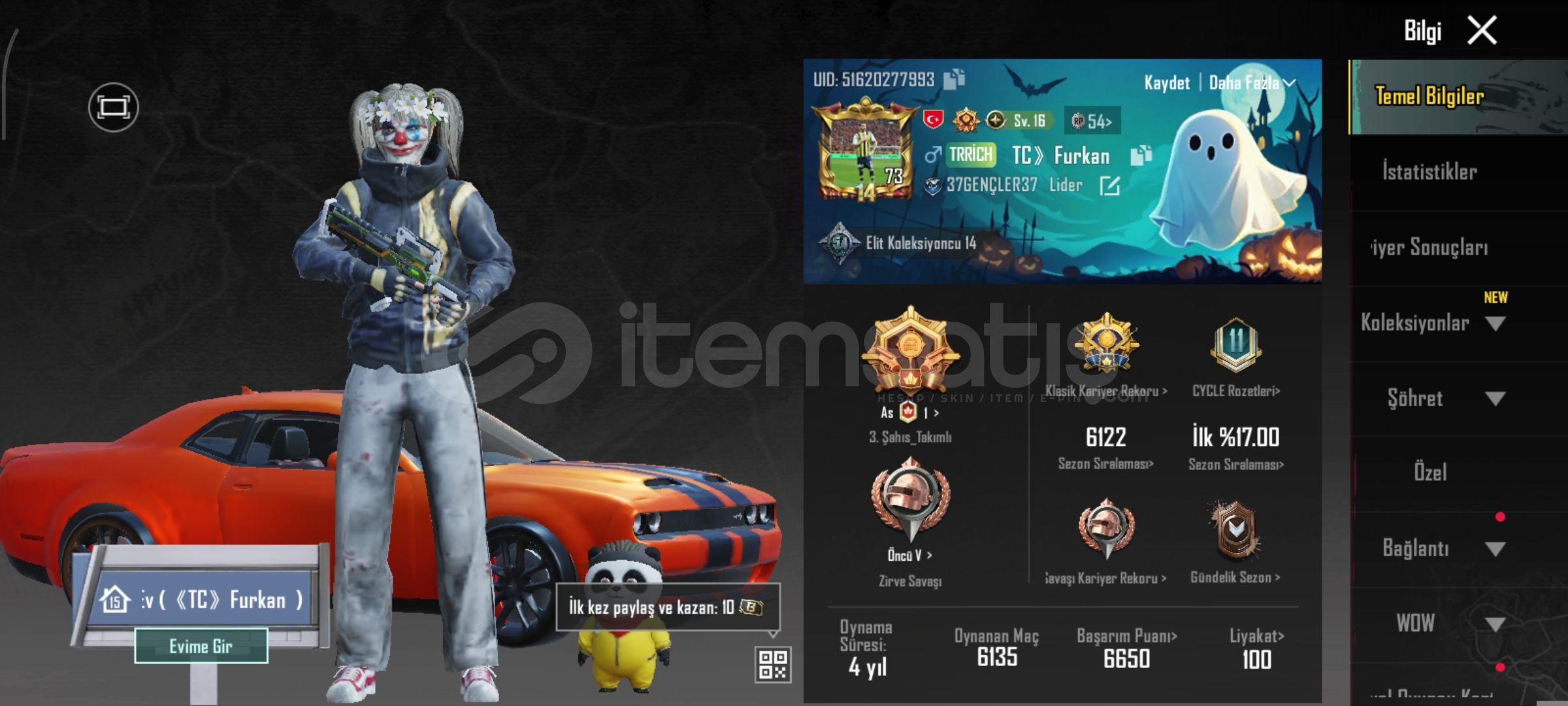 Hesabın bağları temizdir devredilir 3 tane Dodge vardır Hesabın ıd'si vardır detaylı bakabilirsiniz761 k popülerliği vardır Koleksiyonu 54 seviyedir Kombinlik kıyafetler vardır 3 nihai var 1 i set 2'si başlık 1 x suit var poseidon