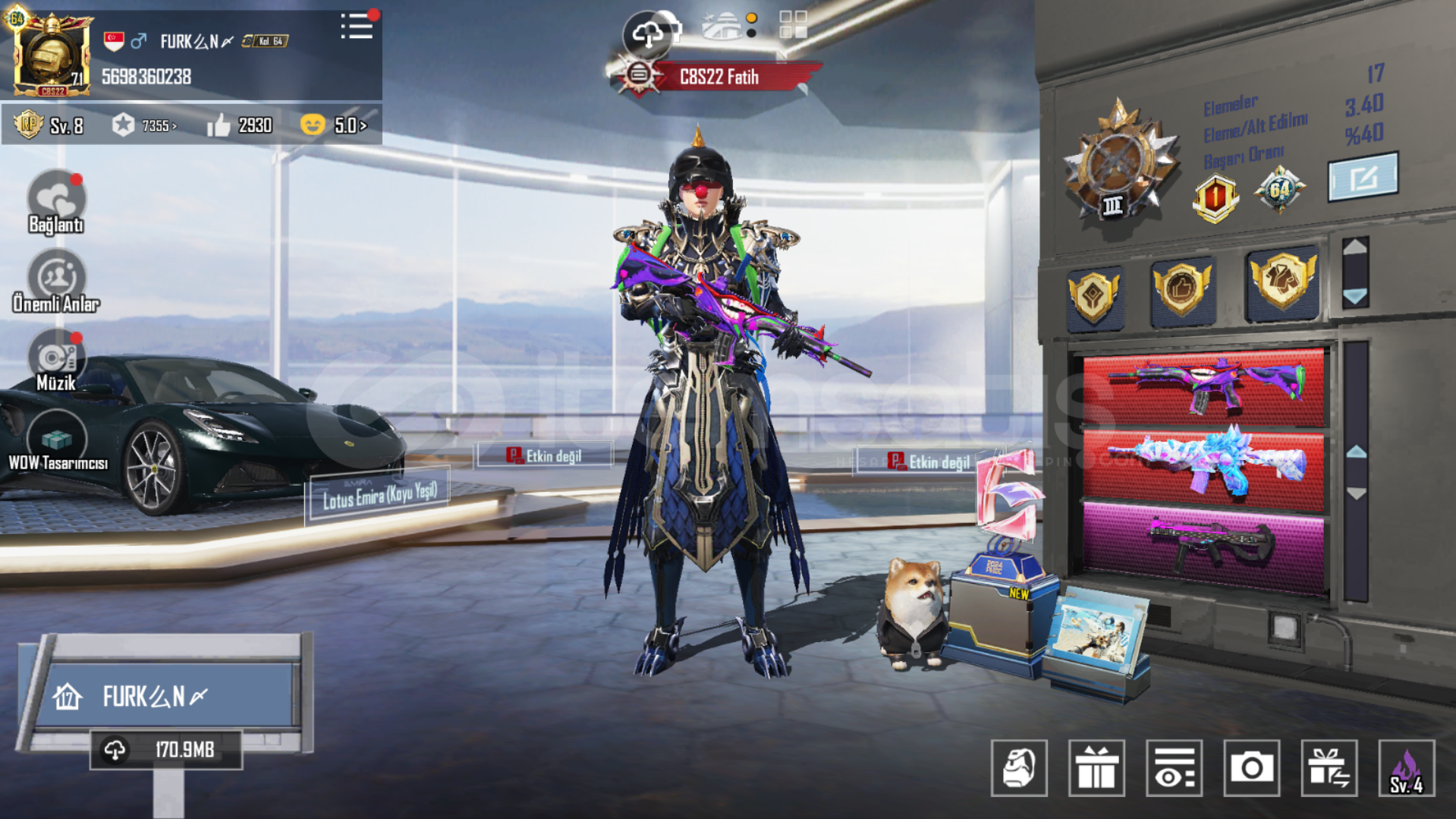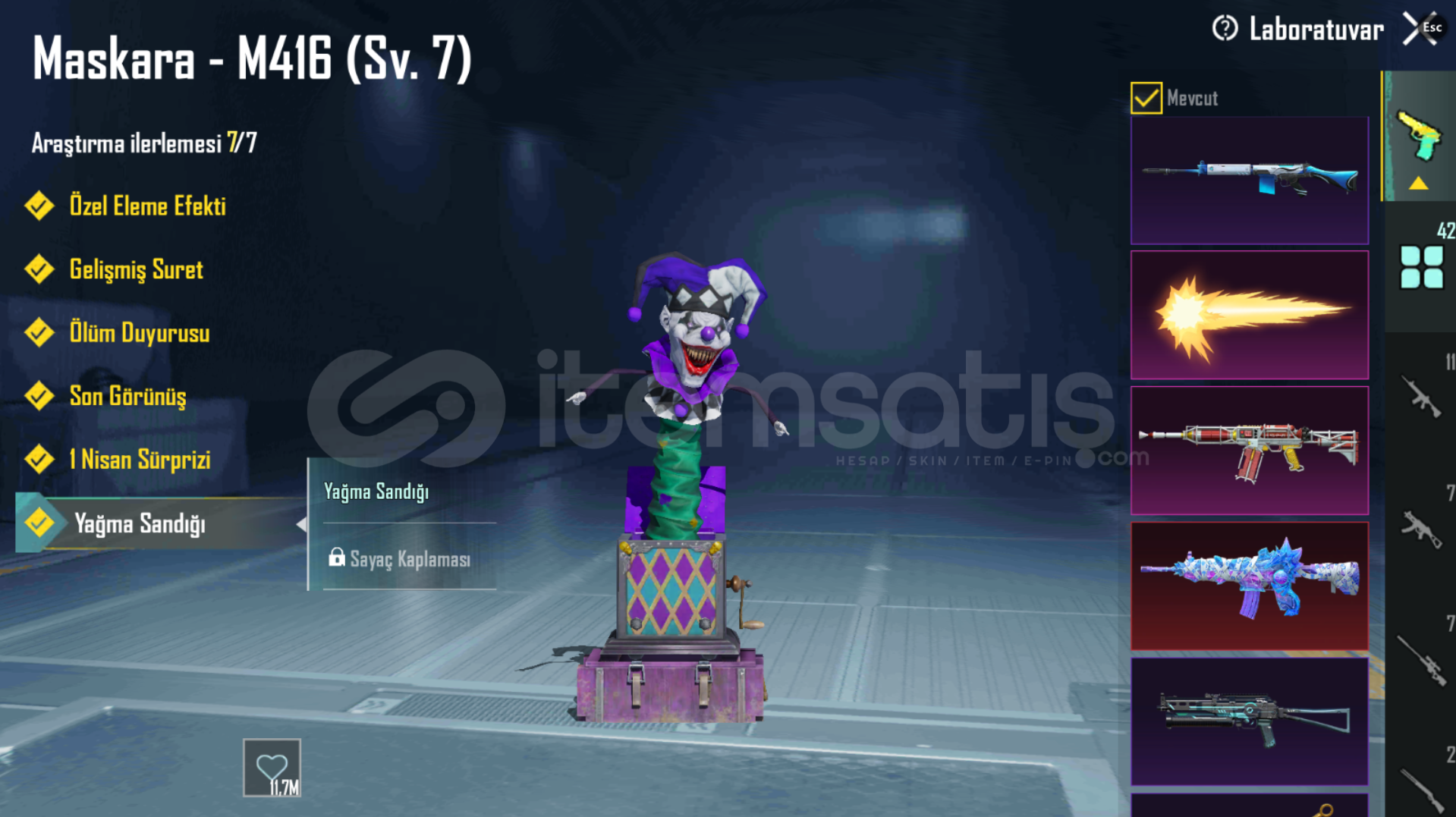 120 DESTANSIPOSEİDON ZIRH-X - 4 SEVİYE!!! 7 NİHAİ !!!ALEVLİ MUMYA SETİMAVİ MUMYA SETİHAYALİ AMİRAL SETİHAYALİ AMİRAL BAŞLIĞITEKİNSİZ SOYTARI BAŞLIĞIZARİF AŞIK BAŞLIĞIYARAMAZ SİBER KEDİ BAŞLIĞI42 YÜKSELTİLEBİLİR:MASKARA M416 - MAXXMUMYA M416 - MAXXYILDÖNÜMÜ UMP45 - MAXXATOMİK TETİK S12K - 5 SEVİYEYALDIZLI GALAKS...