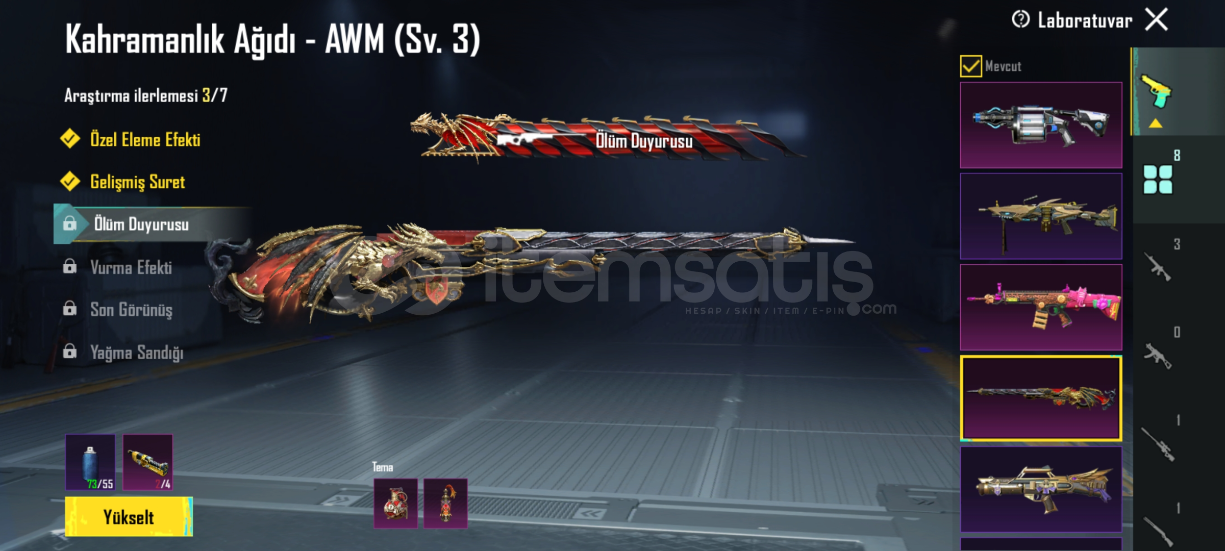 3 tane xsuit 30 destansi 8 yükseltilebilir