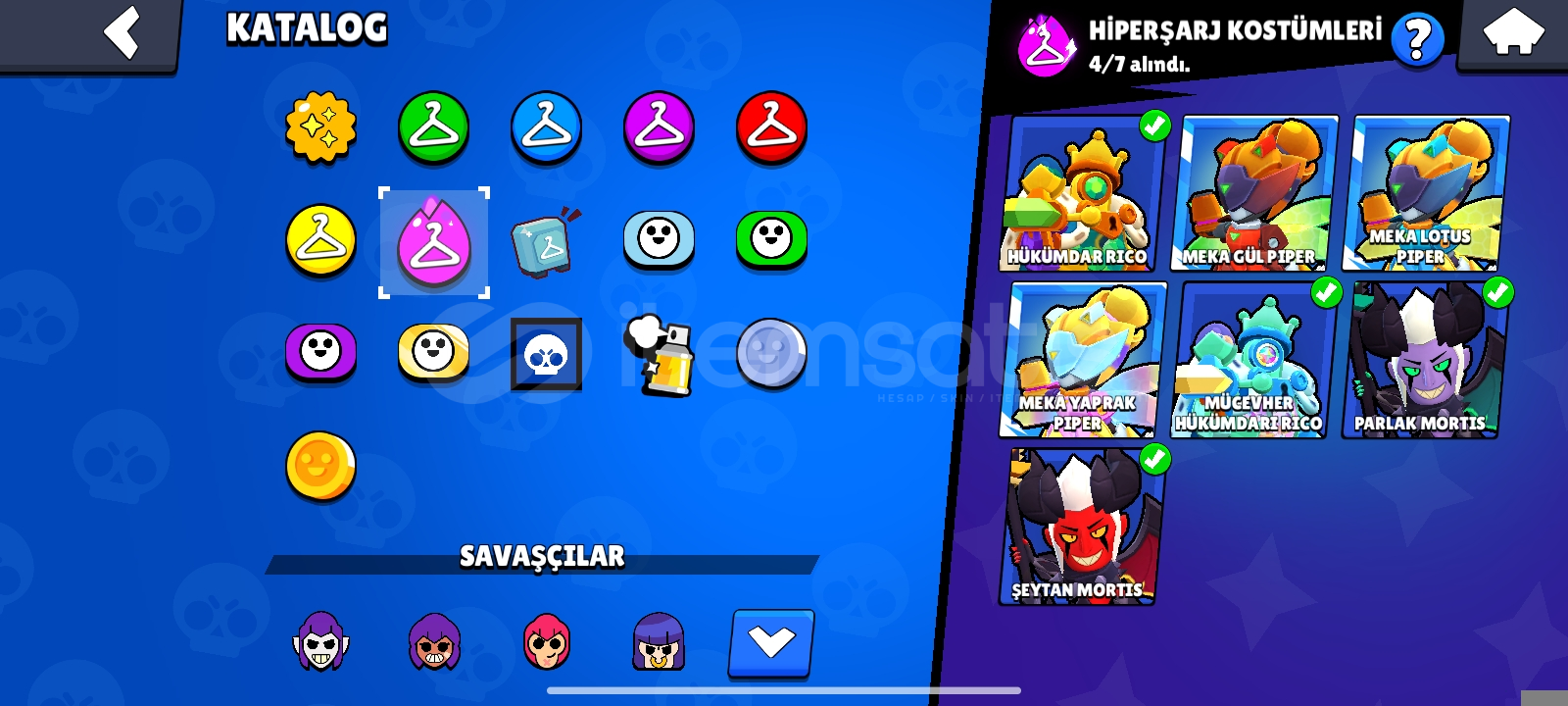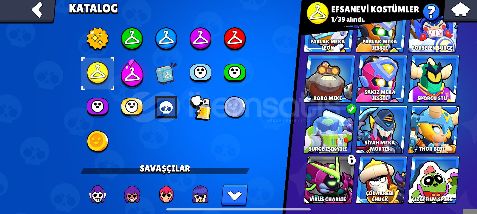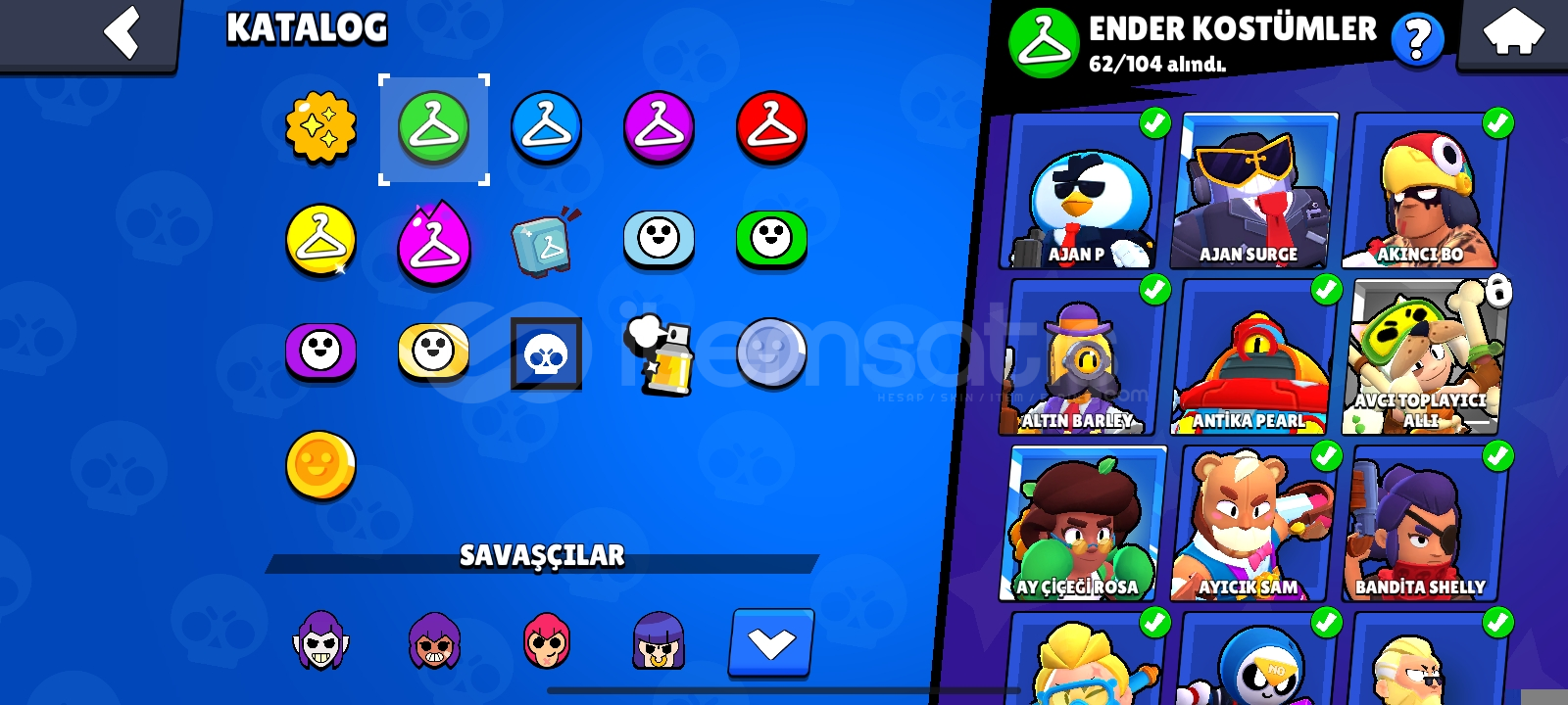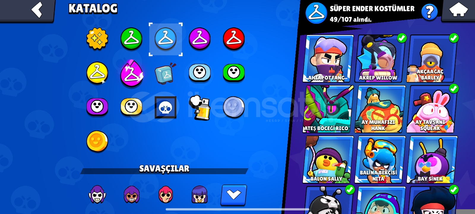 Hesab 30 k 89 karakter var ender, süper ender, destansı, efsanevi, ultra efsanevi tğm karakterler mevcuttur daha fazla bilgi için dm İD Kromam65Ve hesab tek bağdır alana şimdiden hayırlı olsun 5max karakter vardır zamanında hepsi 1200 kupa ve üstü olmuştur