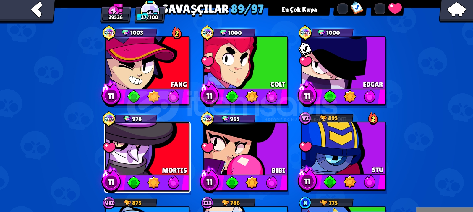 Ve hesab tek bağdır alana şimdiden hayırlı olsun 5max karakter vardır zamanında hepsi 1200 kupa ve üstü olmuştur