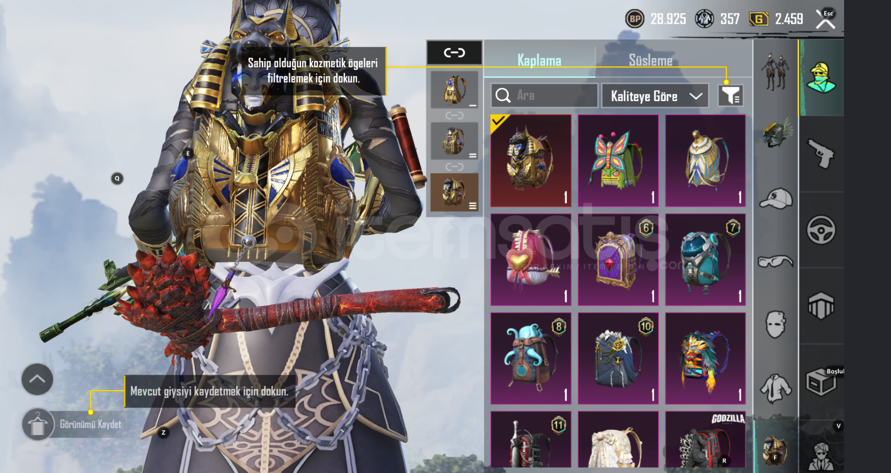Hesabda 2 xuit Firavun Çantası Maskeli Medyum Başlığı Yakan Kükreme - M416 5 seviye Ruhbiçen Ump45 1 Seviye 39 destansı Rp açıktır + 417 uc PAZARLIK VARDIR