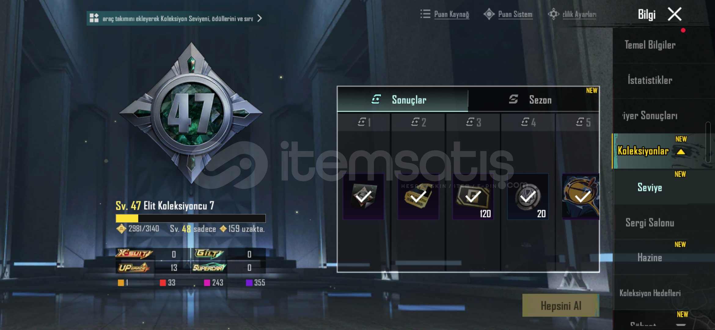 Hesapta 13 yükseltilebilir ve kod akm vardır, hesap fatih olmuştur ve ünvanı vardır tdm kombinleri doludur 48 koleksiyon seviyesinde detaylı bilgiler icin dm hesapta sadece face vardır