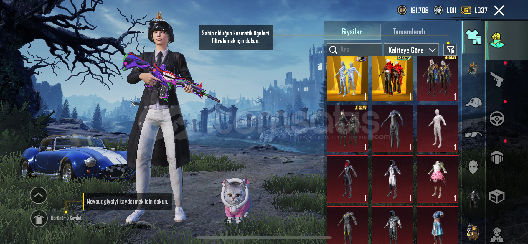 Maskara 7 seviyeM24 4 seviyemaskara scarl gibi skinler var34 Adet materyal vardikenli kask mavi mumya güzel kombinler var 3 nihai 120 destansıshelby mavi spor araba