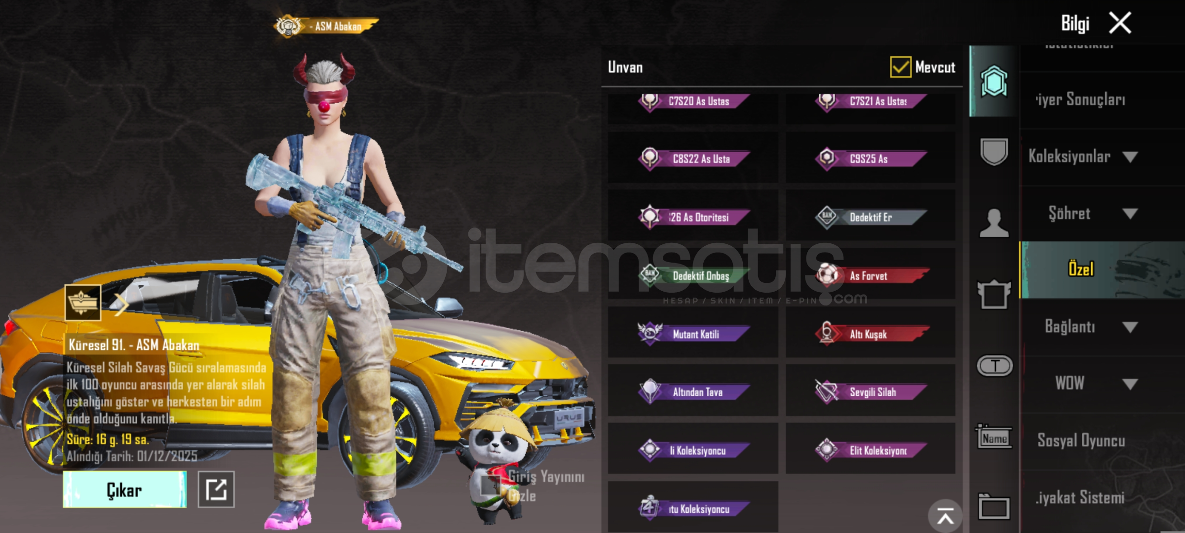 ( İNDİRİM KESİNLİKLE YOKTUR CİDDİ ALICILAR YAZSIN...)70 Koleksiyon4 Nihai160. Destansı( 3 Adet Xuit )(4 Seviye Ölüm DUYURULU Poseidon Xuit)867. Elit782. Epik42 Yükseltilebilir4 Süper Car ( Yeşil Lambo )( Sarı Lambo )( Pembe Tesla )( Siyah Dodge Hornet )Fatih Çerçeveli ( 47 Ünvan )Özel Unvanlar (Küresel)(As Forvet )(Avrupa 35. Asm Abakan )(Dedektif On Başı )( Dedektif Er )( Mutant ...