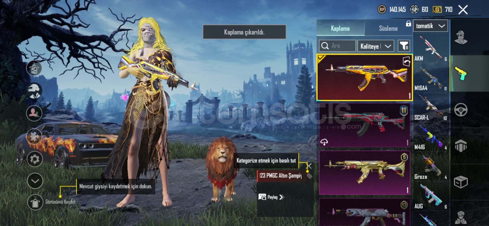 -PMGC altın şampiyon destansı m762(vuruş efektli) Yıl dönümü tava(ses çıkaran), PMGC tava, ölüm mesajlı bombalar ve molotoflar