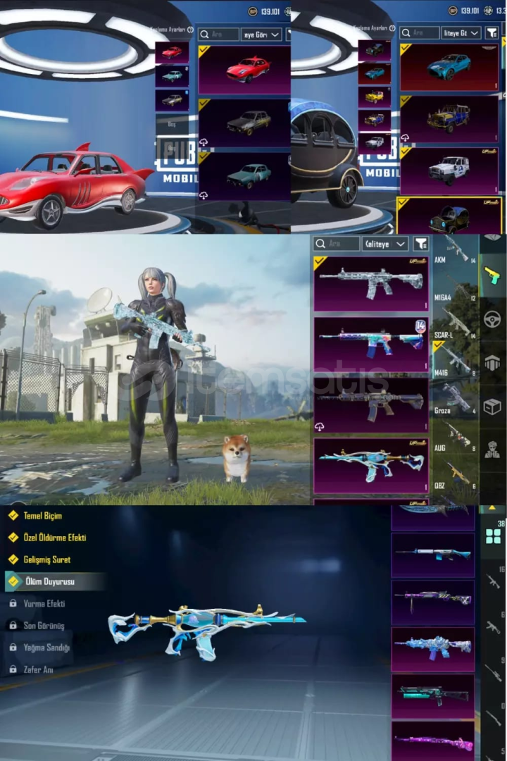 40 Silah 14 Ölüm Mesajlı Aston Martin + TUATARA arabalı . Silvanus Zırh-X 2 SV . BUZ DİYARI M416 6 SV. Dalgaların Şeftali M416 4 SV Yıldız Denizi Amirali AKM 4 SV . STYX NEHRİ GROZA 4SV. EMP UMP45 4 SV. Küçük Midilli M762 4 SV. Öldüren Nağmeler M24 4 SV. Göksel İşaret UZİ 4 SV. Yükselen Ejderha MG3 4 SV. Evangelion 4.Melek AUG 4 SV. Şirin Kedi KAR98. NE ARARSAN VAR