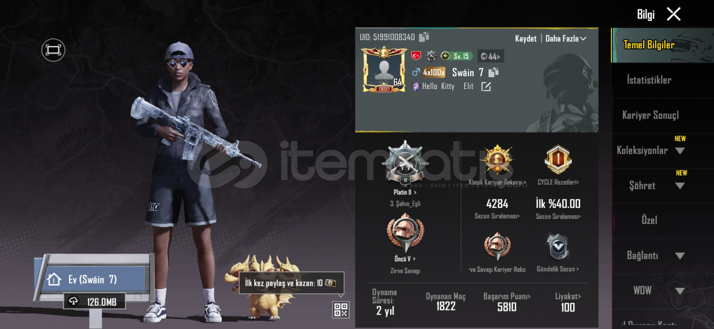 •41 destansı•12 yukseltilebilir +Buz M4 4 sv dir•Fatih unvan cerceve•Temiz Bağ •1 yoldas •Arkd listesinde kızlar vardır