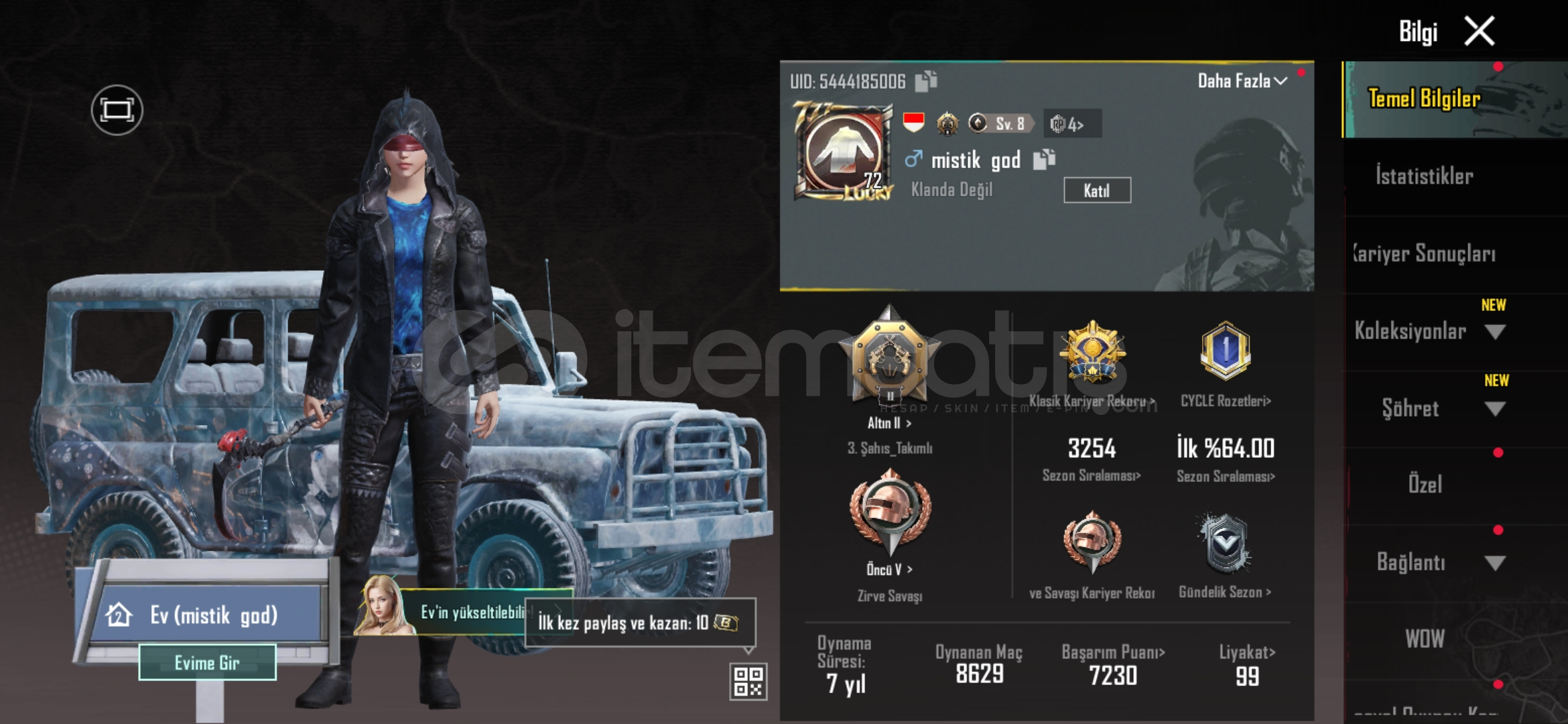ACİL PARA LAZIM BU YÜZDEN SATIYORUM VE OYUNU BIRAKALI ÇOK OLDU HİÇ GİRMİYORDUM SON ZAMANLARDA İŞTEN DOLAYI ZAMANIM KALMIYOR PUBGYİDE SİLMİŞTİM GERİ YÜKLEDİM SATMAK İÇİN