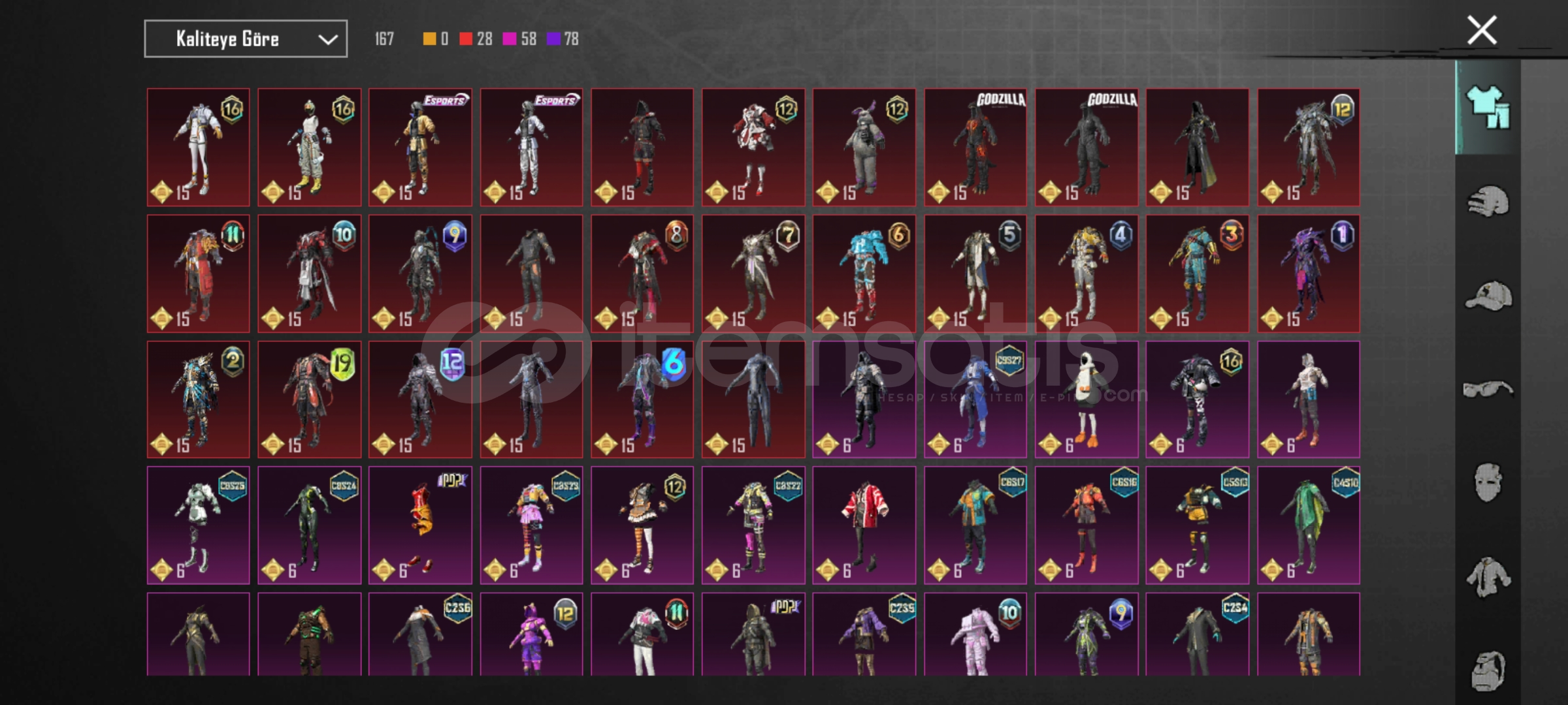 45 Destansı5 Adet yükseltilebilirM762 Midilli 4 seviyeRyomen Sukuna Groza 1 seviyeGodzilla Balta 3 seviyeÖzel Yapım 2 adet s12kFiravun Sırt ÇantasıMaskeli Medyum KaskıS2 maskesiKombinlik GiysilerSürüm EmojileriGodzilla Sedan2 adet yoldaş4 Adet kırmızı Amblem1 Adet materyal13.000 popülerlik408 uğurlu para2 Adet isim değiştirme kartı