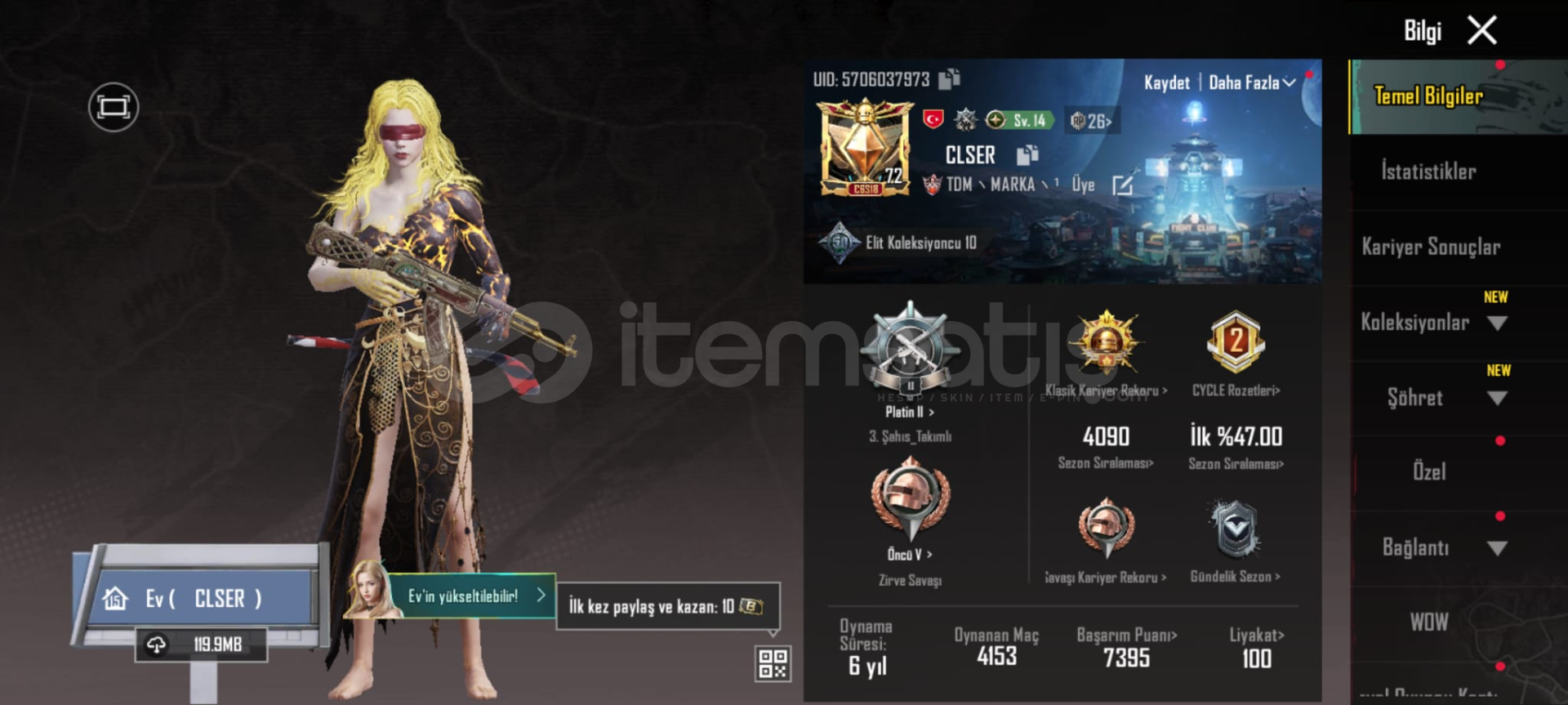 72 SEVİYE FATİH GÖRMÜŞ HESAP 6ADET ÖLÜM DUYURULU SİLAH