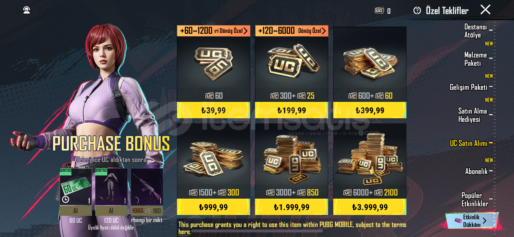 PUBG Mobile kategorisinde 15 gün adı altında satış yapılması kesinlikle kabul edilemez, gerçeği yansıtmayan ve doğruluğu olmayan bir işlem olduğu için yasaktır, tespiti durumunda lütfen bize bildiriniz.