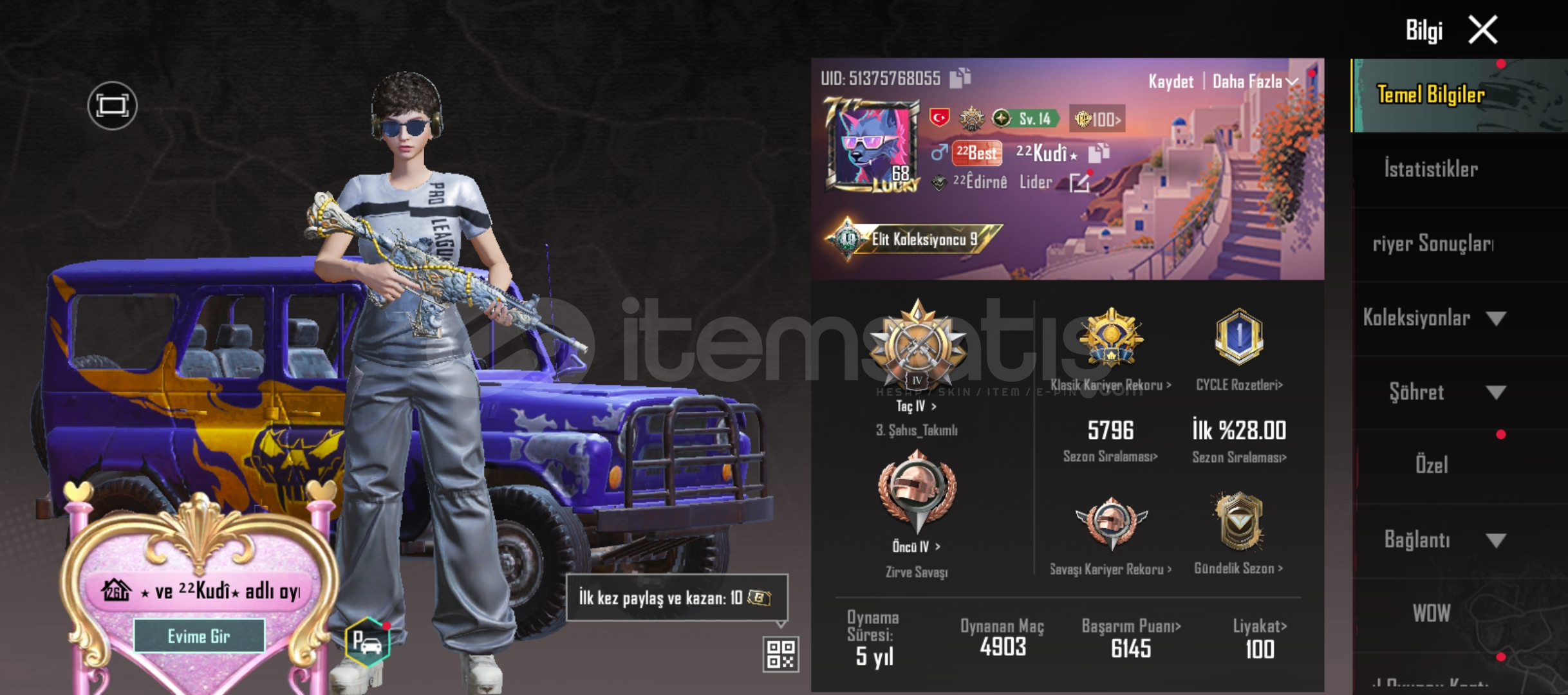 Kombinlik Şeyler Dolu68 Seviye Hesap10 Fotoğraftan Fazla Foto Koyulmadığı İçin ID 51375768055RP Açıktır Fullenmiştir683k Pop Vardır1Aylık Premium Vardır 10Günü Kaldı100Uğurlu Para VardırGümüş Guru M41614Yükseltilebilir Silah