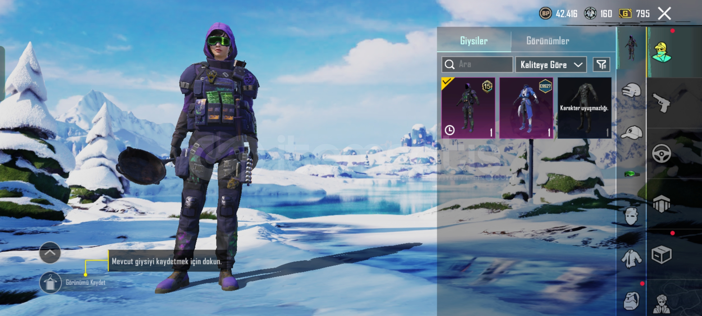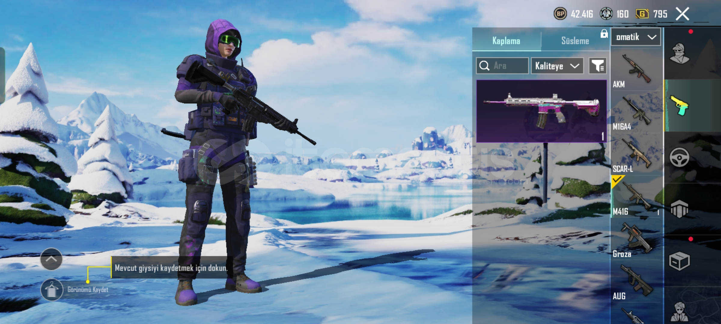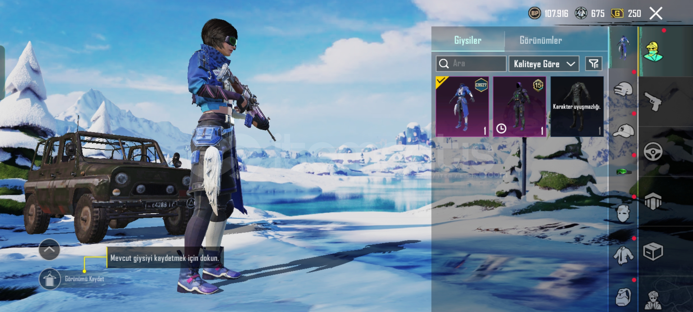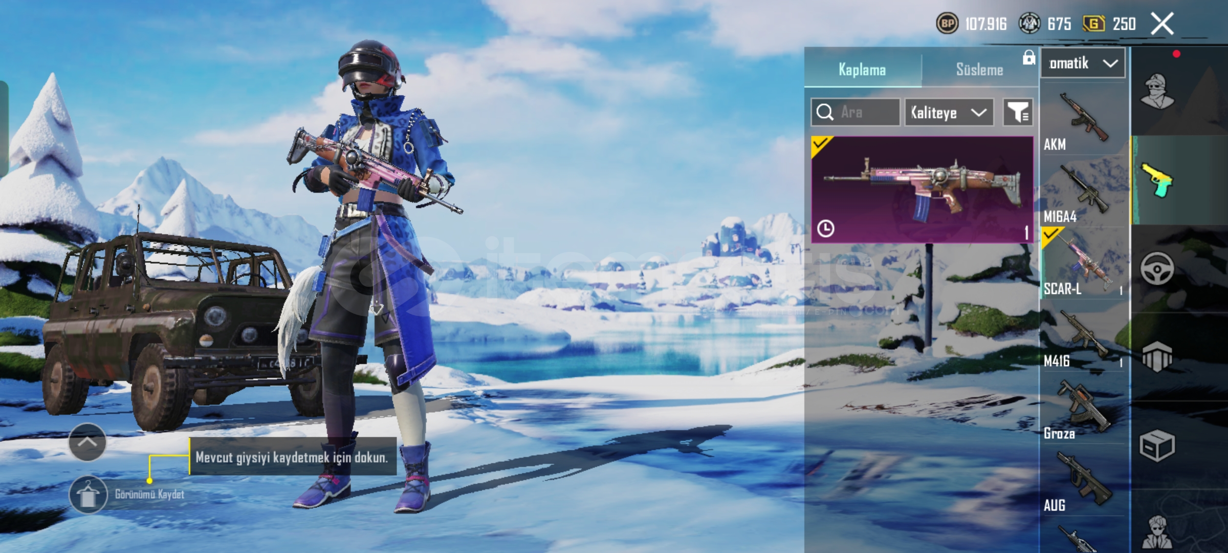 PUBG MOBILE HESAP SATILIK (Fiyat teklif usulü)Temel Özellikler:- UID: 52390185288- İsim: Asit567 (değiştirilebilir)- Seviye: 49- Klan: Yok (klansız)- Rank: Platin 1 (3. şahıs tekli)- İlk %400 (sezon sıralaması)- Zirve Savaşı: Şu An Erişilemez- Dinamo: 1 ay- Dinamo Maç: 69- Başarım Puanı: 610- Liyakat: 100Öne Çıkan Kostümler & Eşyalar:- Mavi Leopar Ceket Seti (tam set)- Kan ...