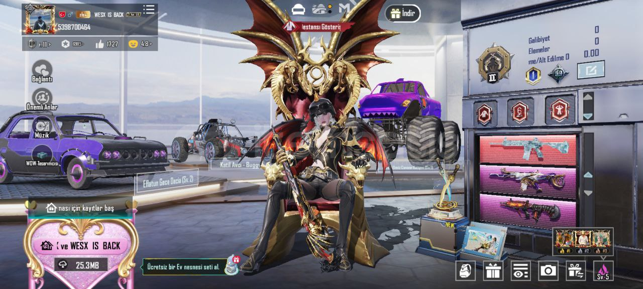 Buz diyarı M416 SV 7Deliliğin pençesinde SCAR-L SV 4Cehennem çığlığı AUG SV 4Kahramanlık ağıdı AWM SV 4Endüstriyel yırtıcı M24 SV 4 Yaldızlı galaksi MK14 SV 4Küçük midilli M762 SV 4Kasvetli av S1897 SV 48 Bitlik patlama UMP SV 4Atomik tetik S12K SV 4Deniz rüyası melodisi SLR SV 3Ruhani Muhafız UZİ SV 3Tundra şovalyesi hançeri SV 3diğer 21 silah ...