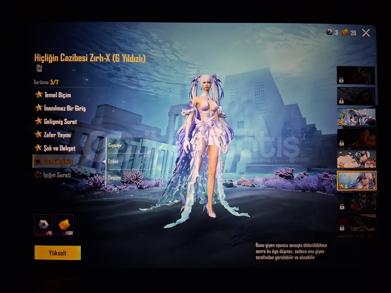 7 nihai set3x xsuitHiçliğin cazibesi 5 yıldızFiore 2 yildizGaladria 2 yildizSilahlarDalgaların sefkati M4 maxDeliliğin pençesi Scarl max Ruh celladı m762 maxBuz kristali ump maxCehennem akm max kendiligindenIşık ace 5svBaşiboş isyan m762 5svBir çok silah ve set hesabiArabalarKirmizi lamborghiniYesil lamborghiniAston martin uazLotus sarı torosDodge charger turuncuCanavar kamyon1 materyal mevcutTek bağ gmail degiş...