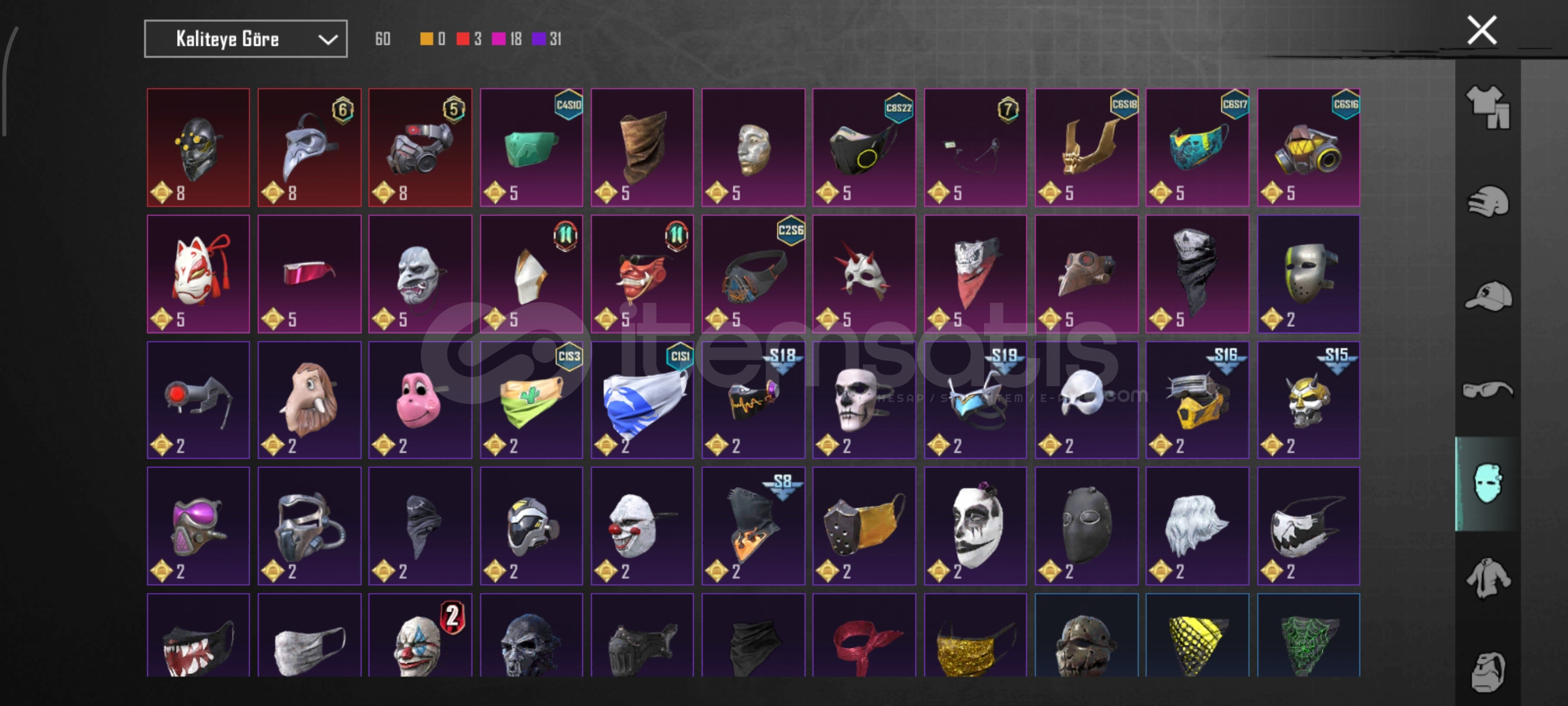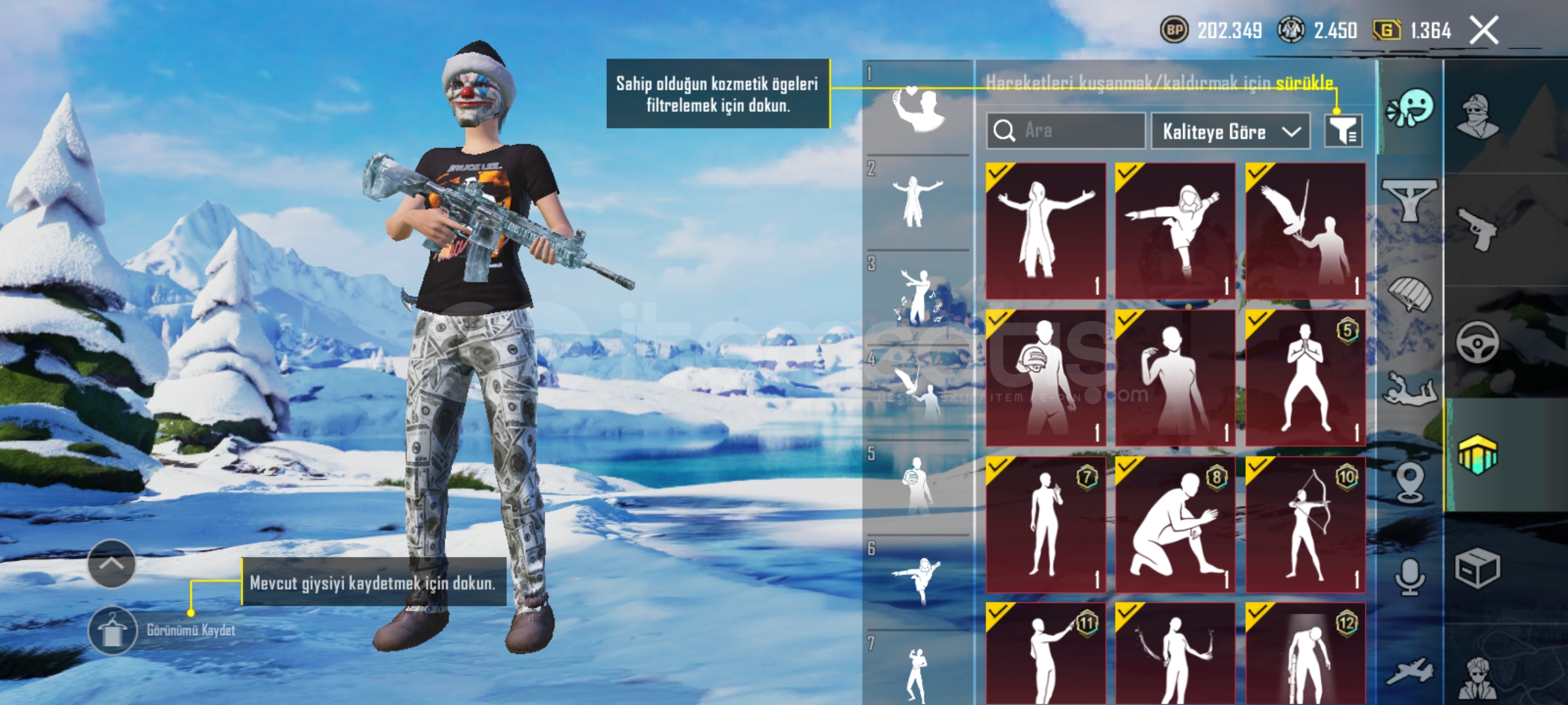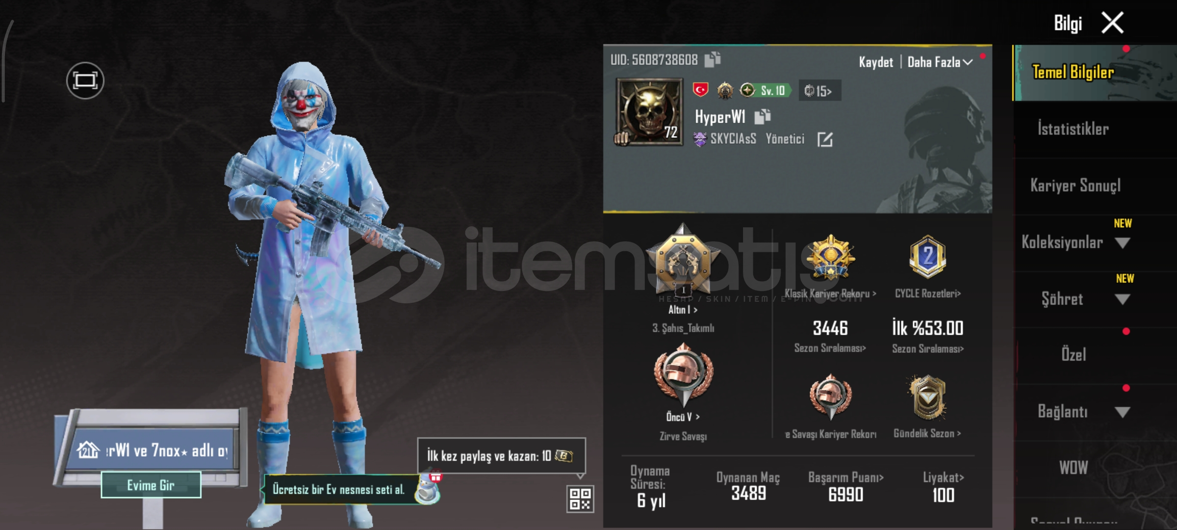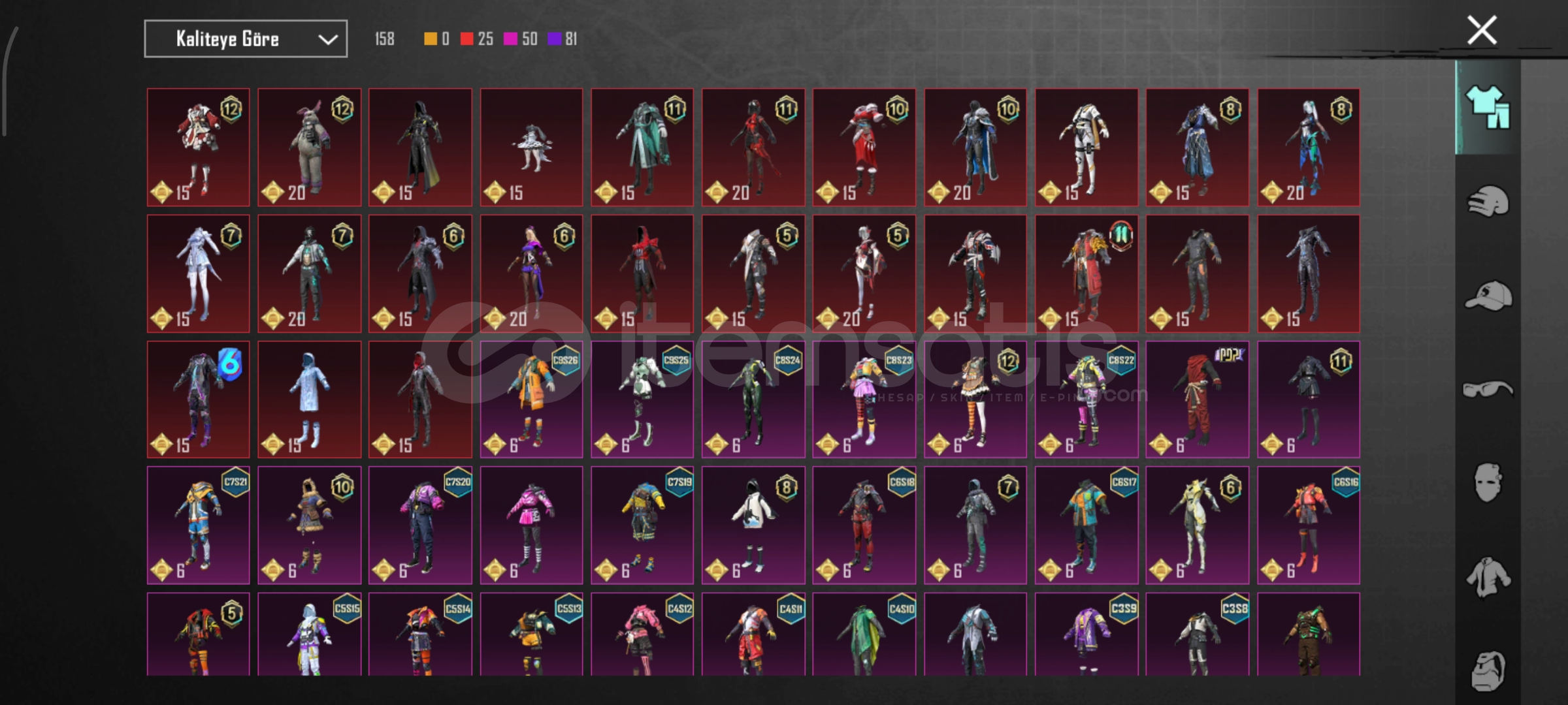 50 koleksiyon41 destanstlı11 yükseltilebilirBuz diyarı setiSeri katil setiS2 maskesiDolar pantolonu1 destantlı amblemPro örgü üstleri2 metalyelBuz diyarı (sv4)Ruh biçen UMP45 (2sv)İskelet Çekirdek M16A (1sv)Peri cazibesi TAVA (1sv)Zarif leylak Thampson (1sv)Gece gladyatörü BİZON (1sv)Deniz rüyası Melodisi SLR (1sv)Tundra şövalyesi HANÇER (1sv)Dikenli şafak M16A (1sv)Narin tetik SKS (1sv)Yama...
