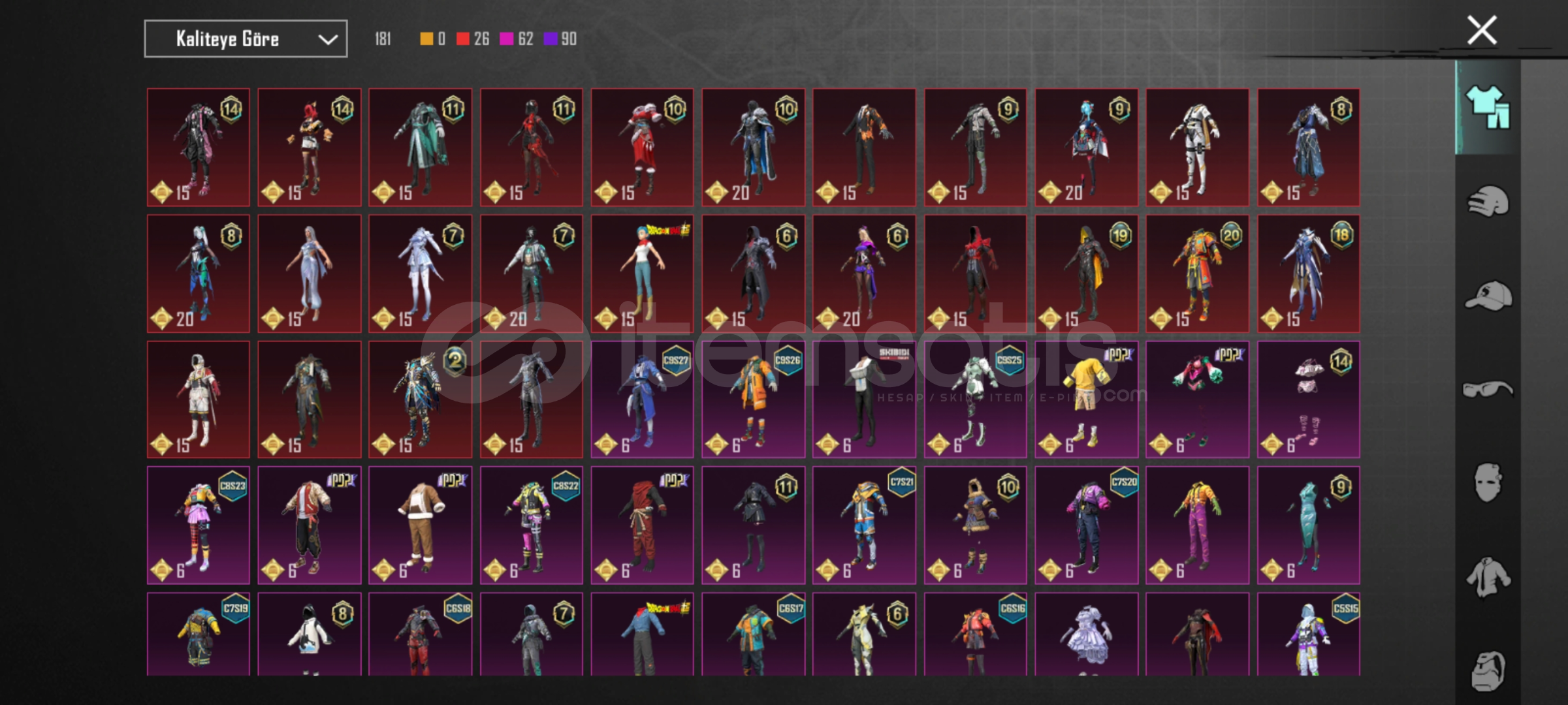 HESAP İSMİ: ROCKSxARON - HESAP İD: 5405809406 - OYUNDA KOLEKSİYONDAN İNCELEYEBİLİRSİNİZ51.4 KOLEKSİYON - 43 DESTANSI - 330 EFSANEVİ - 432 EPİK S6 HESABI - 9 ROYALE PASS AÇILMIŞ HESAPAVCI PRENSESİ SETİKAÇIK LEVAZIMATÇI SETİBULMA KARAKTER SETİRAHMA RİAD SETİYERALTI ARİSTOKRATI SETİDRAGON BALL SETLERİDRAGON BALL ÇANTASIBUZ DİYARI KASKİŞGALC...
