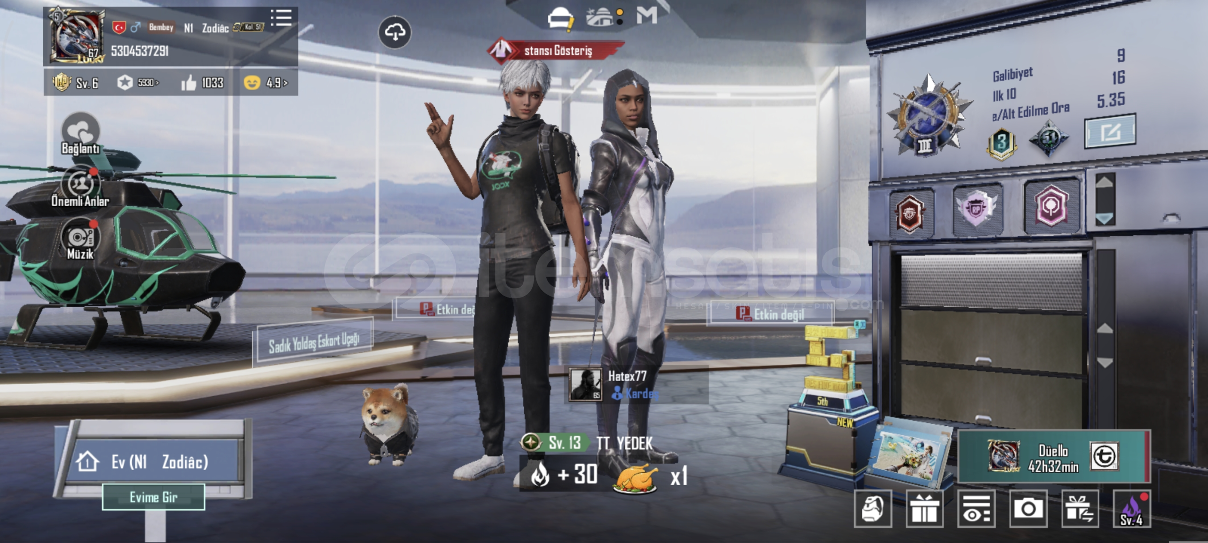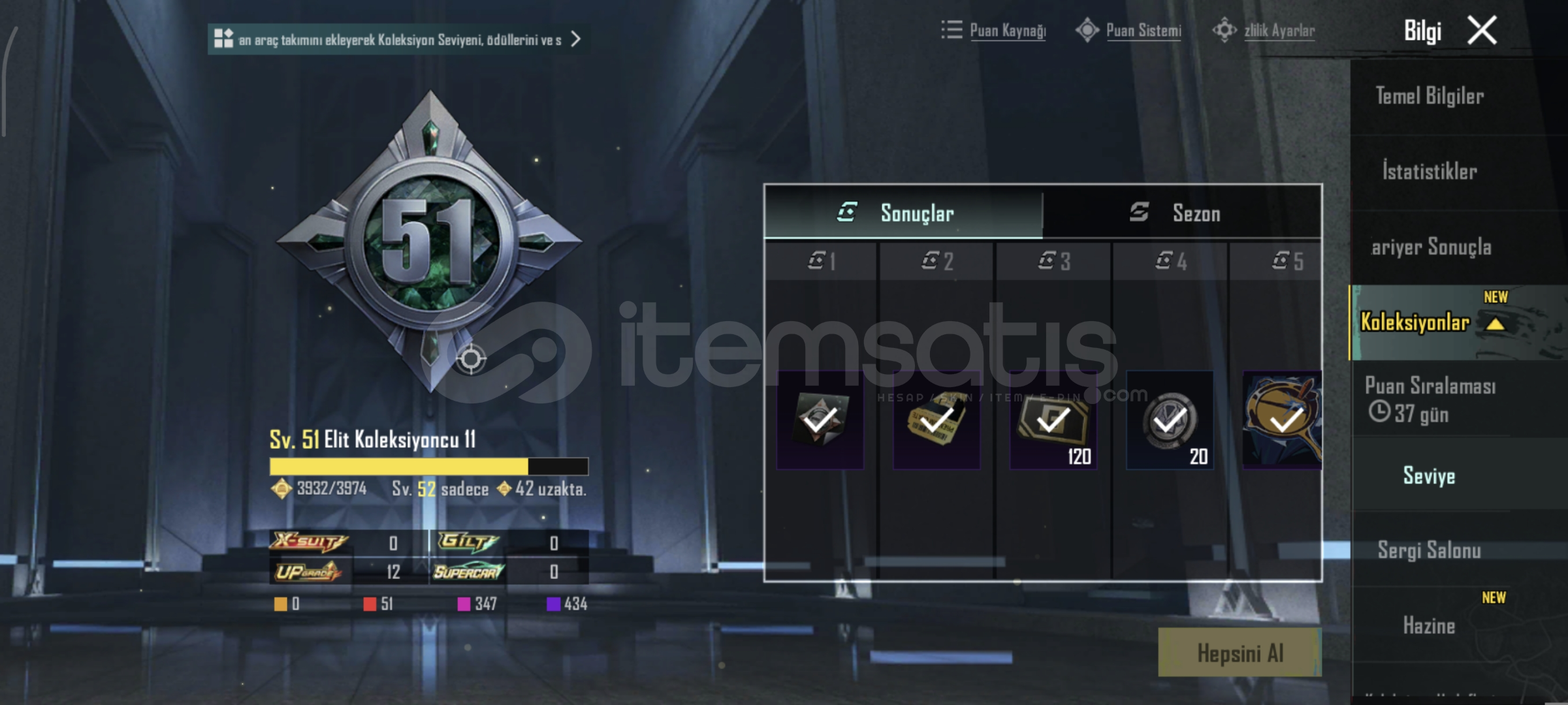 Destansı gosteris Hesap suanlik 51 koleksiyon 52 ye 60 puan kaldı 12 yükseltilebilir silah 2 tane ölüm duyurulu bizon ve m762 toplam 51 destansı 1 materyal ve 3 kırmızı malzeme bulunmaktadır kombinlik hesap kacirma aşırı şanslı hesap