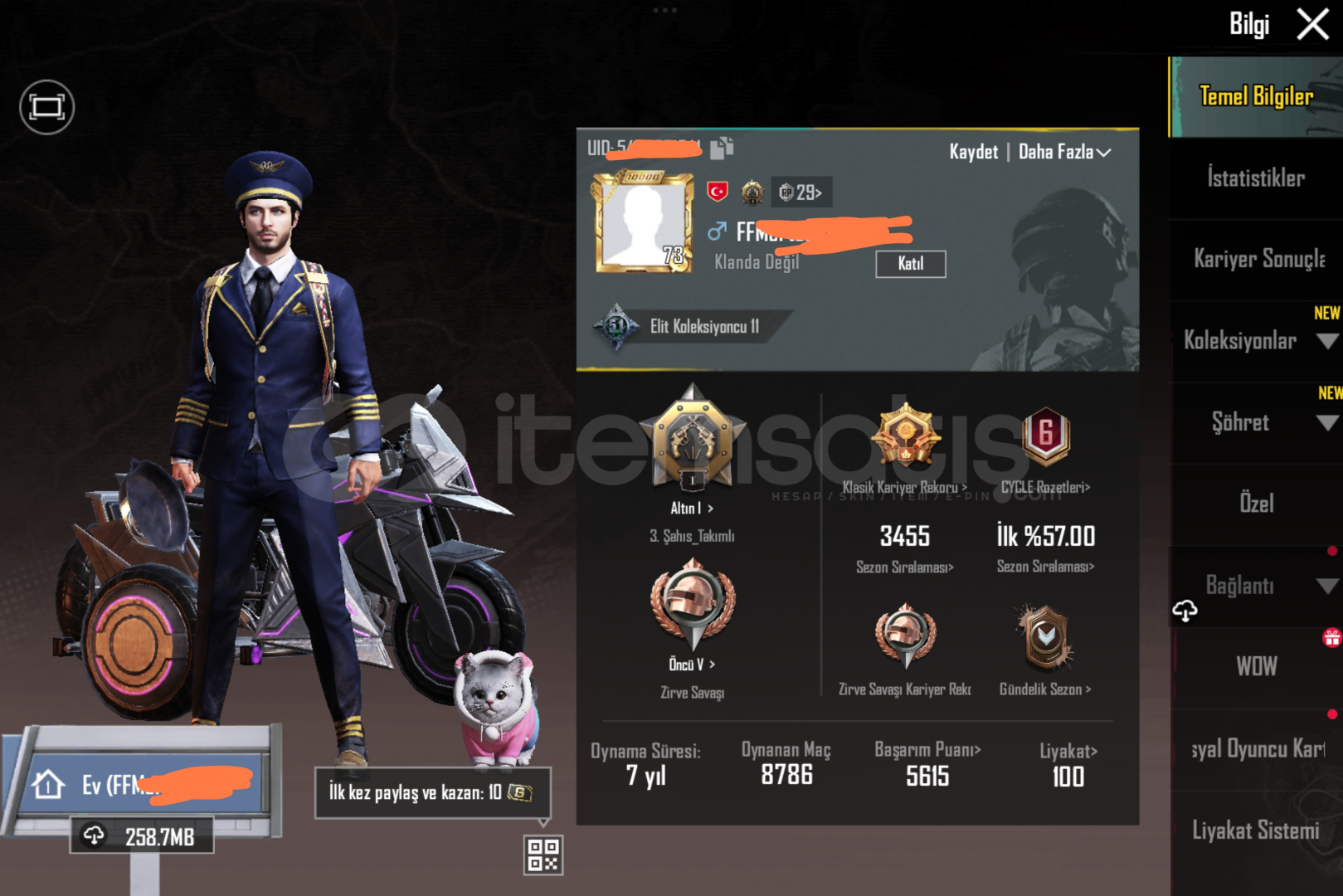 Hesabimda herhangi bir sorun olmayip 8 senedir aktif hesaptirRoyal pass uc si var icindeCok uzun sureli oda karti seviyeleri varKask araba silah canta desenleri fazlasiyla dolu250 den fazla silah deseni (turk bayragi pompali)250 den fazla full kiyafet skiniHesap dolunun dolusu ne face ne google ne twetter bagli degil eeposta ve tel numarasi bagli bunlarda degismektedir7/24 AKTIF CANLI DESTEKSAYFA GUVENILIRLIGIMIZI PROFILDEN KONTROL SAGLAYABILIRSINIZ