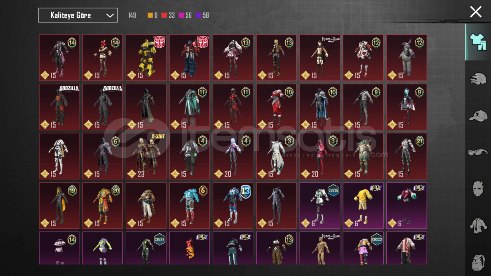 Kor alev x_suitNihai tekinsiz soytarı başlığıKor alev sırt çantasıKan laneti özü sırt çantası54 destansı 1 nihai var14 yükseltilebilir silahFiravun kudreti m24 varGordzilla kostümleri var5 yıllık hesap